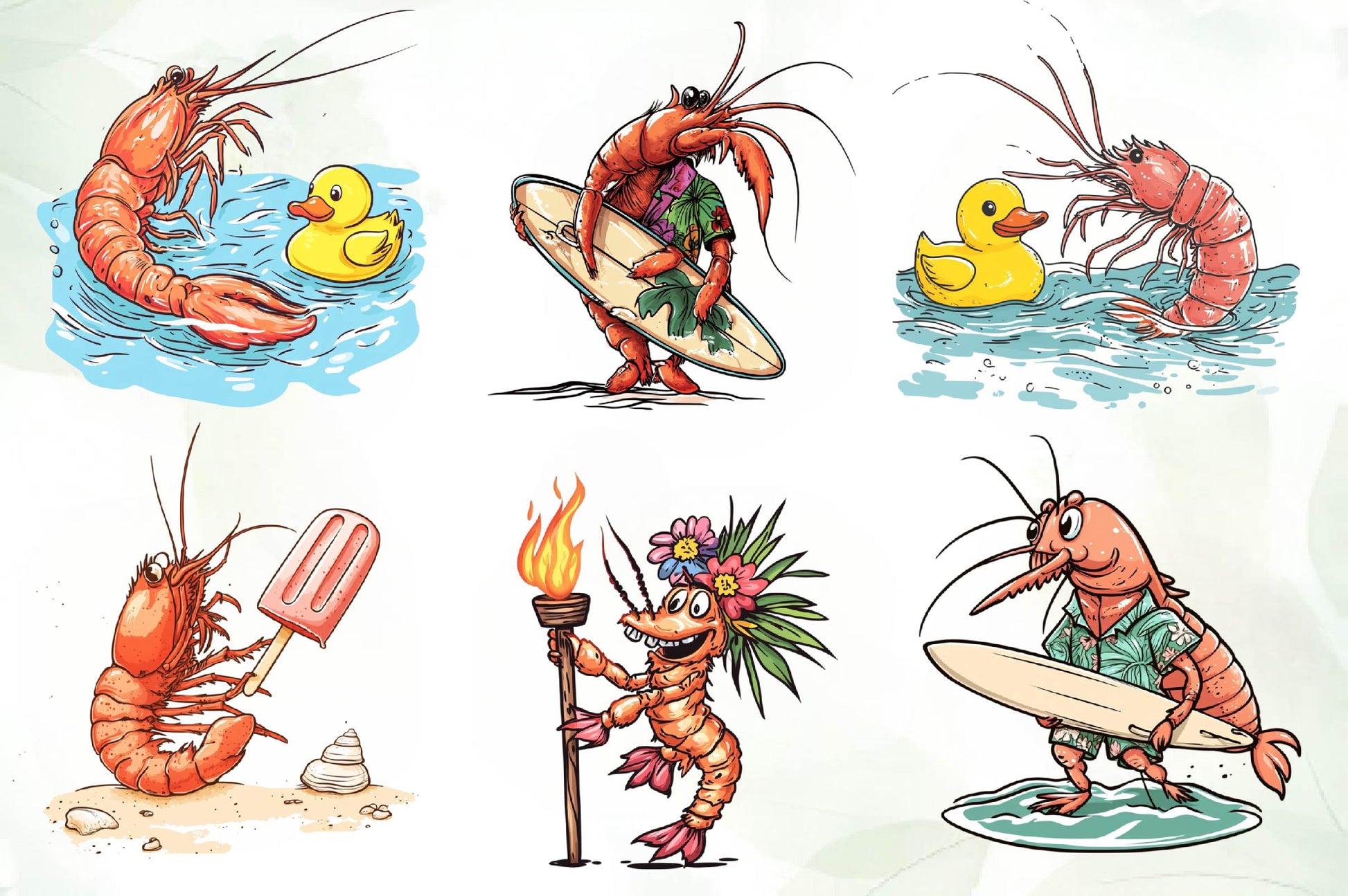 Swim with this Cute Summer Shrimp Clipart Bundle, featuring adorable seafood designs, perfect for summer sea animal crafts.