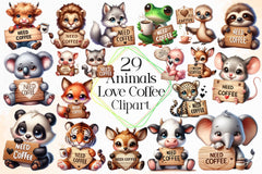 Caffeinate with this Cute Tired Animals Love Coffee Clipart Bundle, featuring sleepy creature coffee designs, perfect for animal beverage crafts.