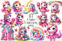 Adorable unicorn characters perfect for magical and fantasy themed projects.