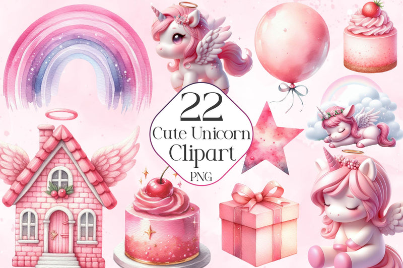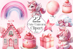 Enchant with this Cute Unicorn Clipart Bundle, featuring adorable unicorn designs, ideal for magical kawaii crafts.