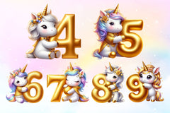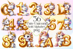 Cute Unicorn Gold Alphabet Clipart Bundle
