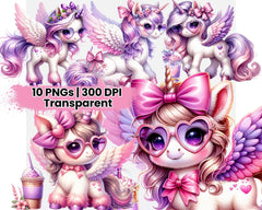 Sip with sparkle using this Cute Unicorn with Tropical Flowers and Iced Coffee Clipart, perfect for tropical crafts.