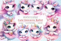 Dance with this Cute Unicorns Ballet Clipart Bundle, featuring graceful magical creature designs, perfect for fantasy performing arts crafts.