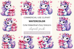 Love with this Cute Valentine's Day Unicorn Clipart Bundle, featuring romantic unicorn designs, ideal for magical Valentine's crafts.