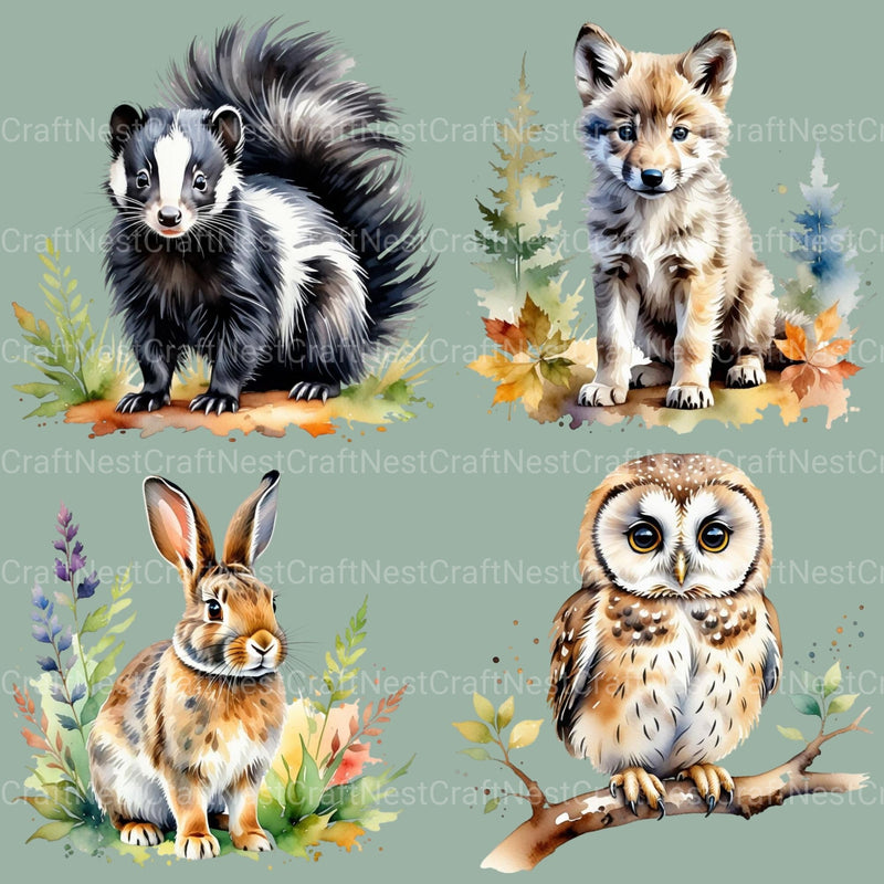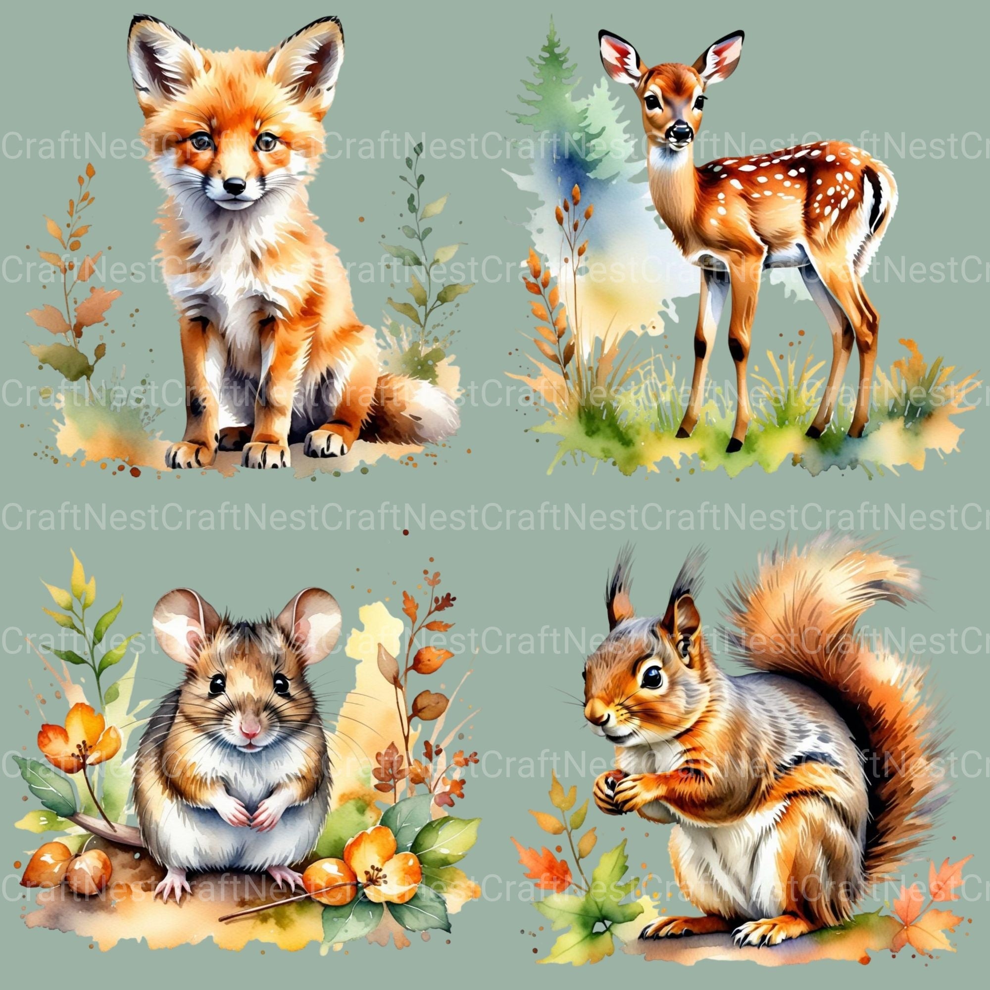 Forest with this Cute Woodland Animals 12 Clipart Bundle, featuring cute woodland creature designs, perfect for animal crafts.