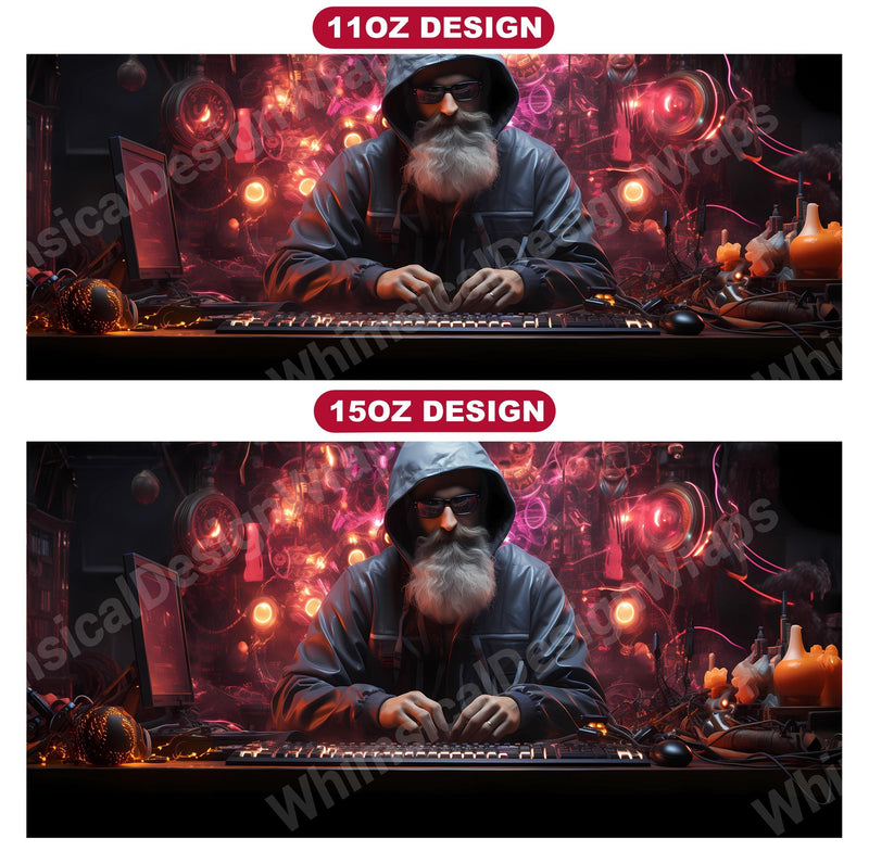 Enter a futuristic holiday utopia with our cyberpunk Christmas digital mug wraps. These edgy designs blend the festive cheer of Christmas with the sleek aesthetic of cyberpunk, creating a unique and captivating twist on traditional holiday imagery that will appeal to fans of both genres.