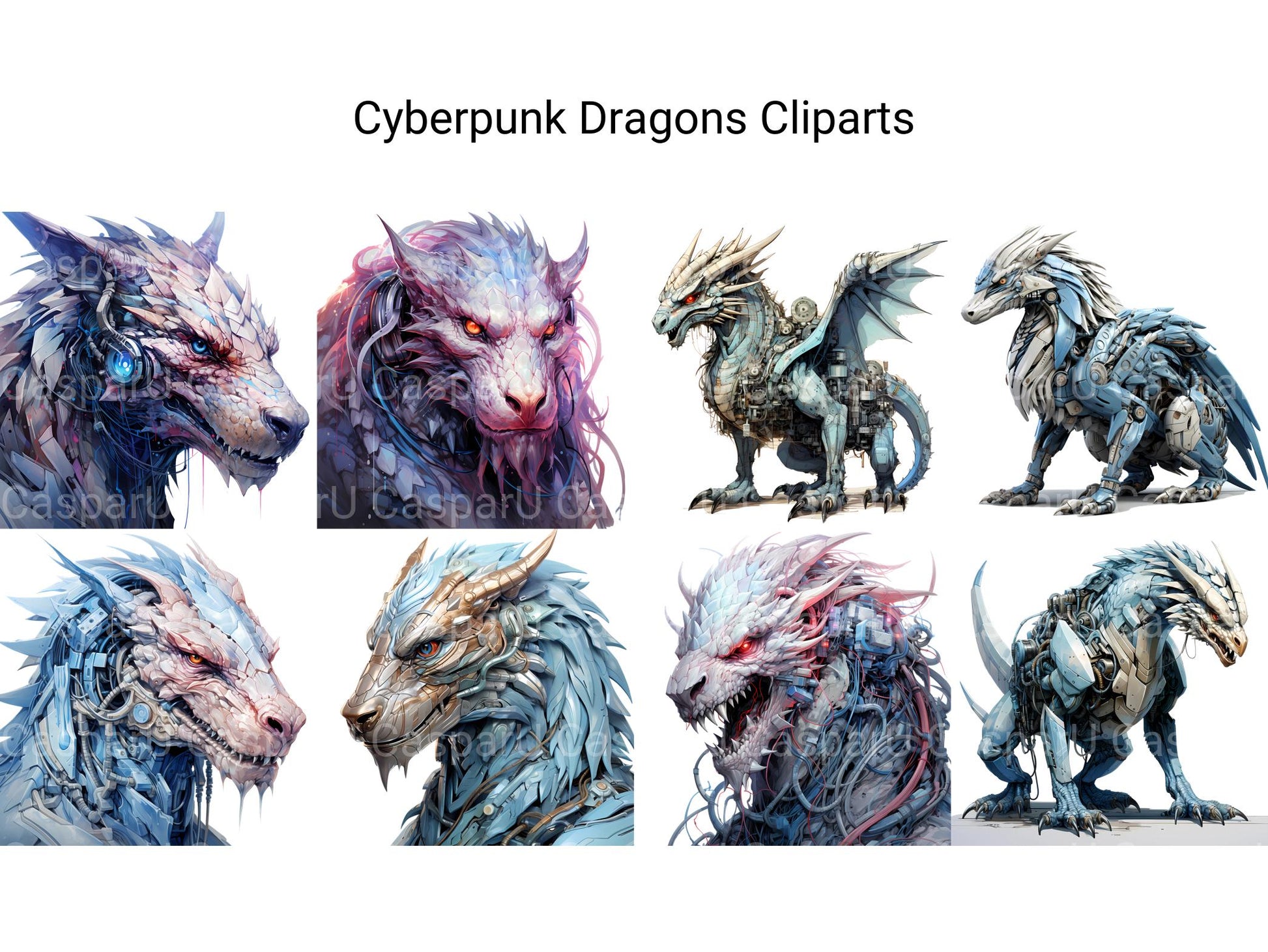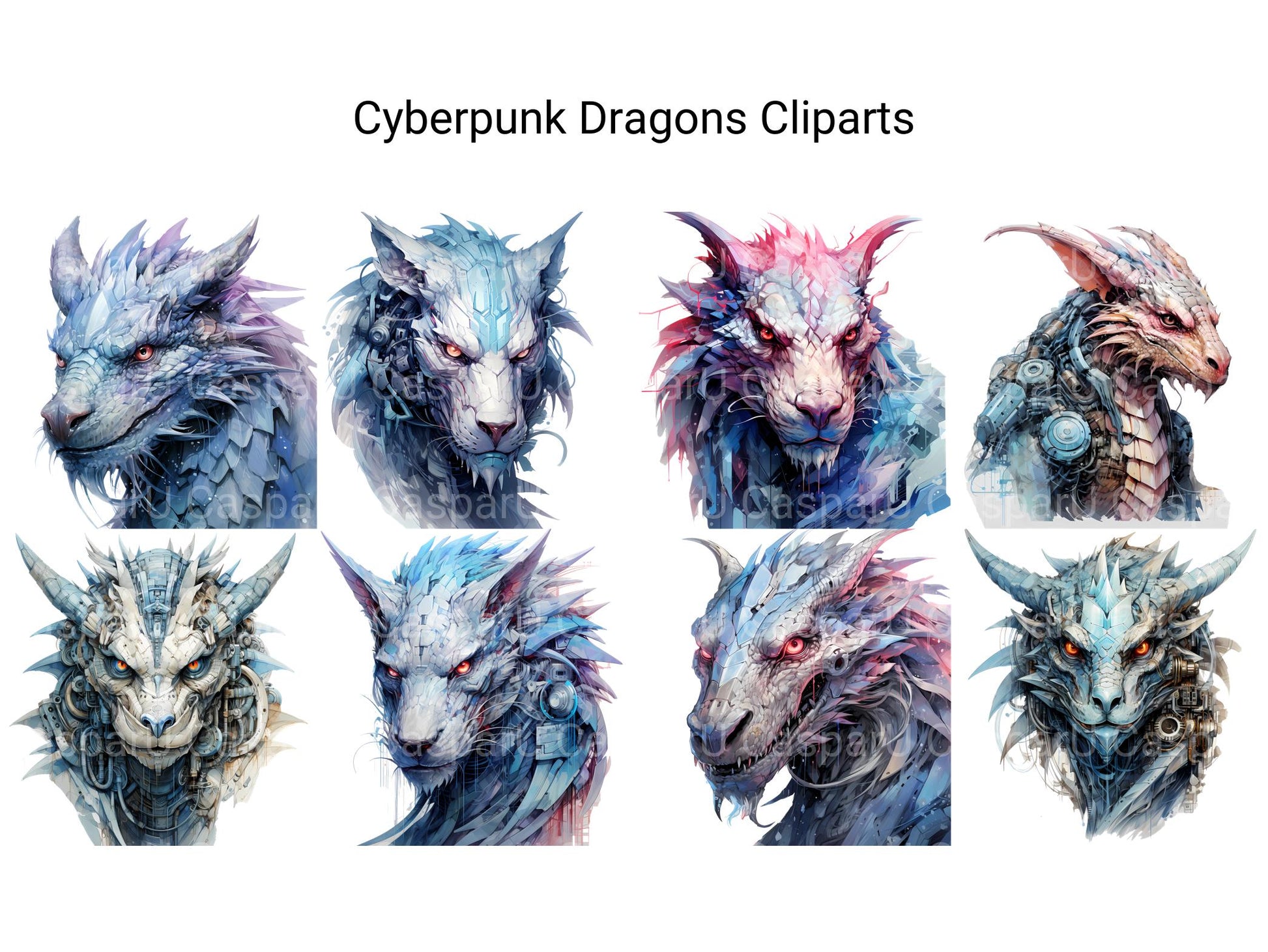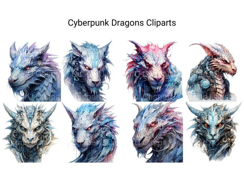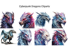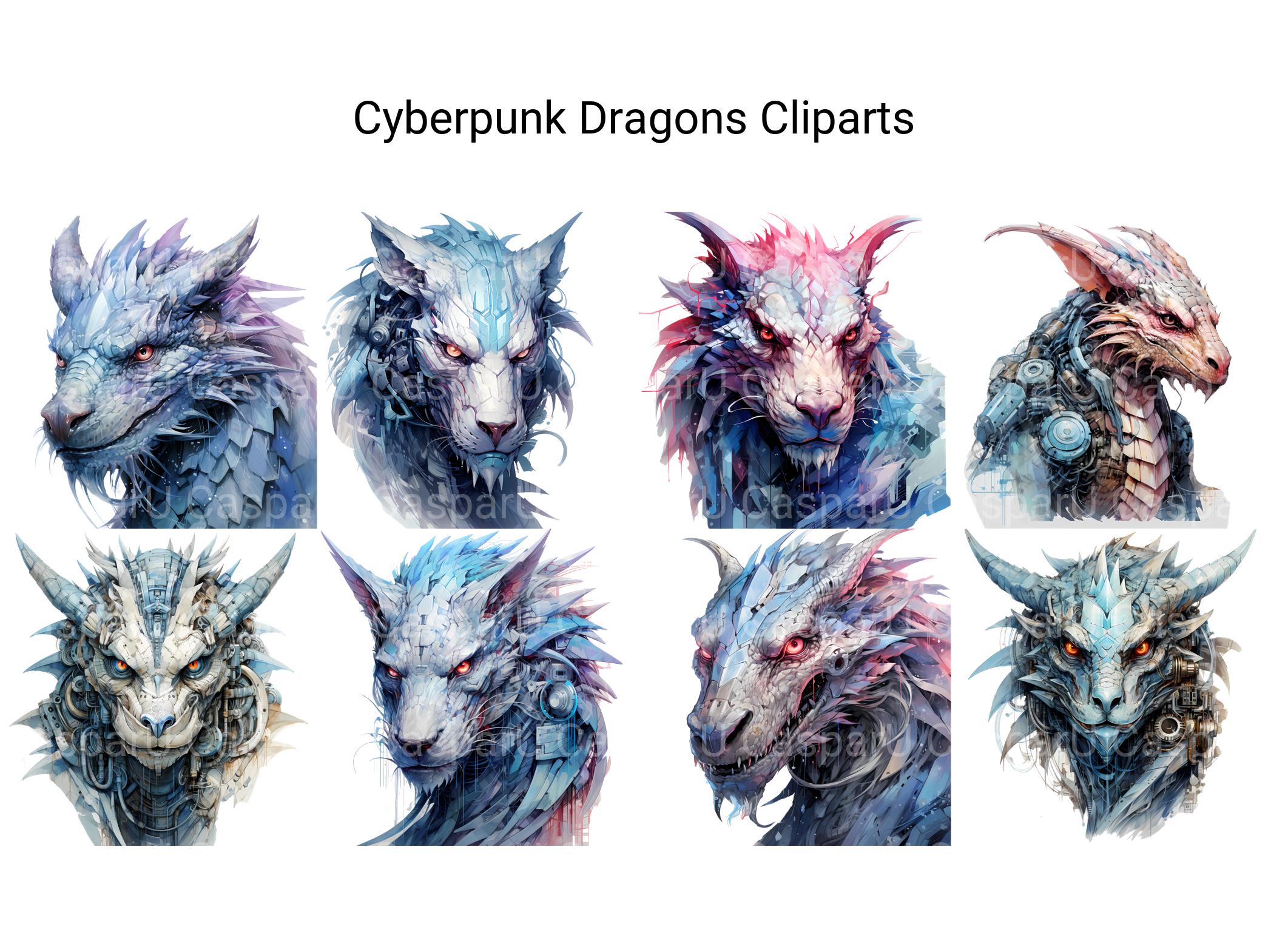 Dive into a futuristic realm of cybernetic wonders with our Cyberpunk Dragons clip art. These dynamic digital illustrations showcase dragons reimagined in a cyberpunk aesthetic, with neon lights and metallic accents, perfect for adding a touch of technological marvel and urban edge to your designs, whether for futuristic artwork, cyberpunk-themed creations, or adventurous tales, inviting viewers to explore the fusion of fantasy and technology in captivating detail.