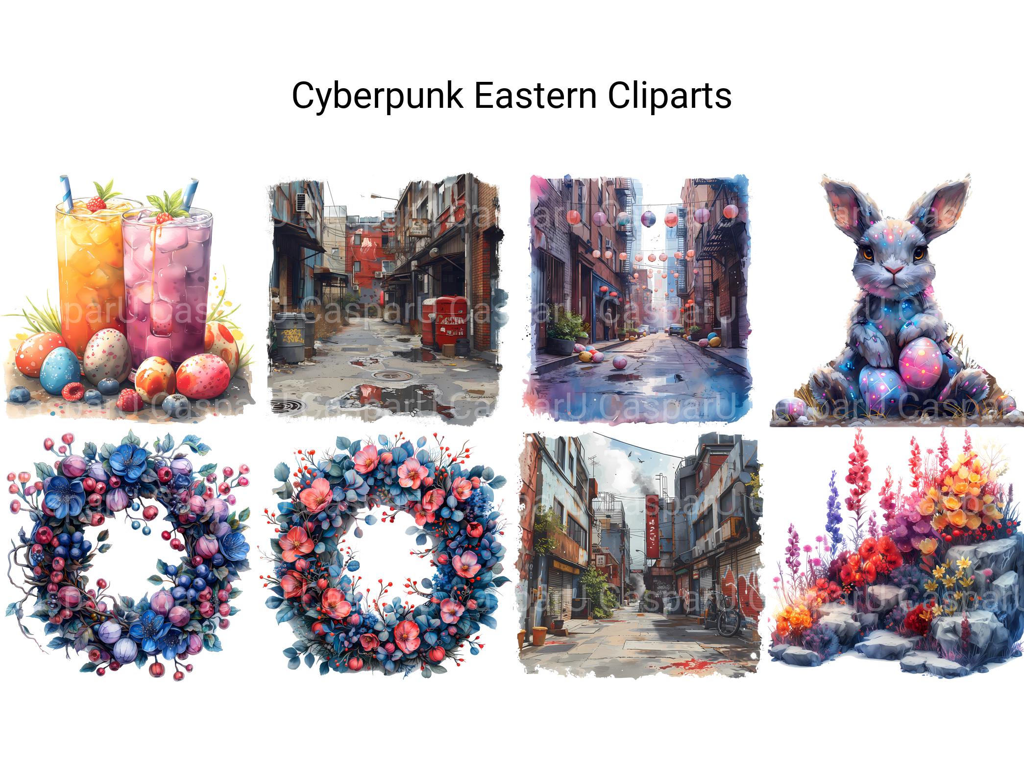 Dive into a futuristic realm of cybernetic wonders with Cyberpunk Eastern digital clip art, featuring futuristic cityscapes, neon lights, and technological motifs infused with Eastern aesthetics. These dynamic images capture the fusion of cyberpunk and Eastern influences, perfect for adding a touch of futuristic intrigue to your projects. Let Cyberpunk Eastern transport you to a high-tech metropolis where tradition meets innovation, inviting viewers to explore the cutting edge of Eastern-inspired cyberpunk designs.