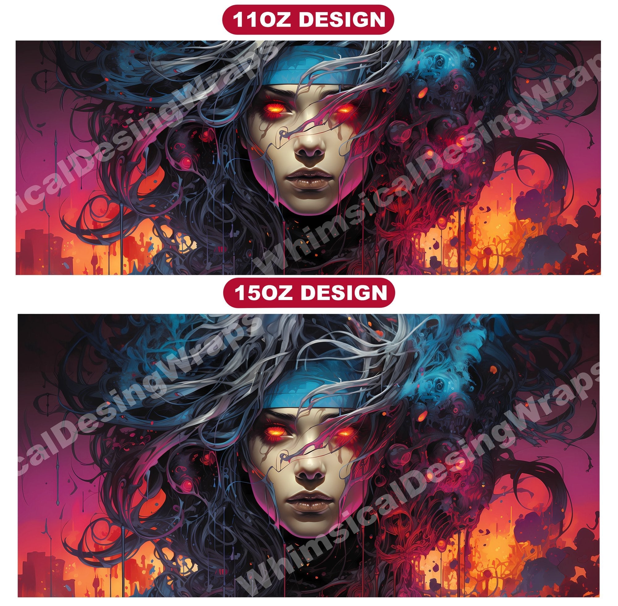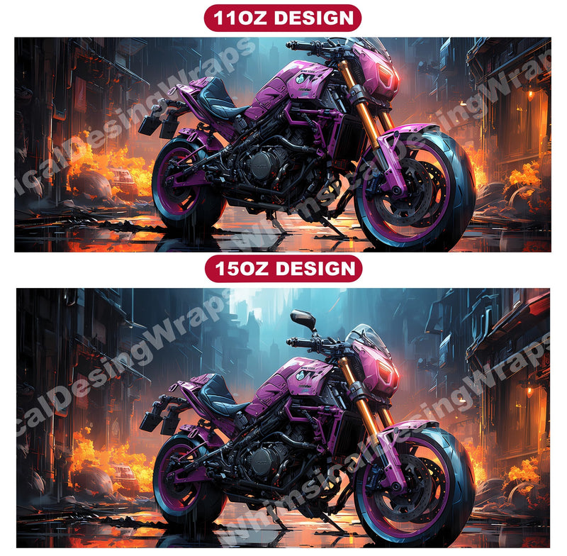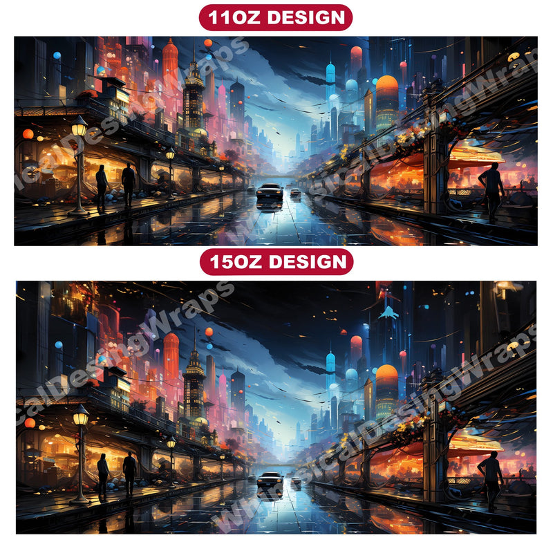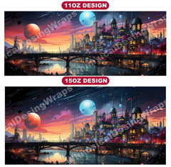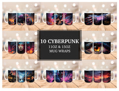 Immerse yourself in the neon-lit streets of a futuristic metropolis with our cyberpunk-themed digital mug wraps. These edgy designs feature sleek technology, urban landscapes, and vibrant colors, transporting you to a world where cybernetic enhancements meet gritty urban realism.