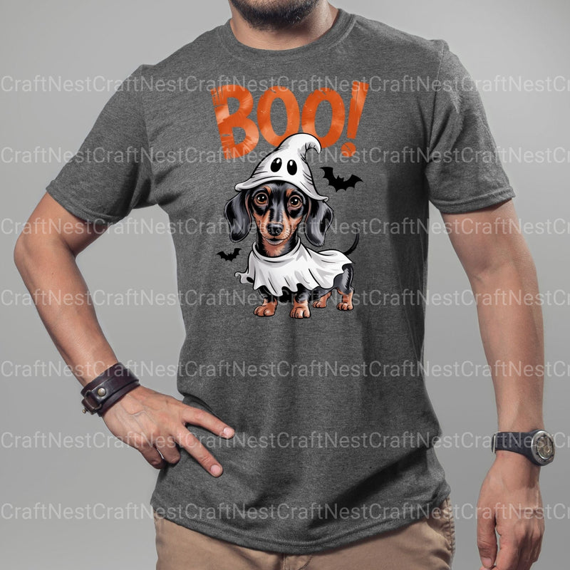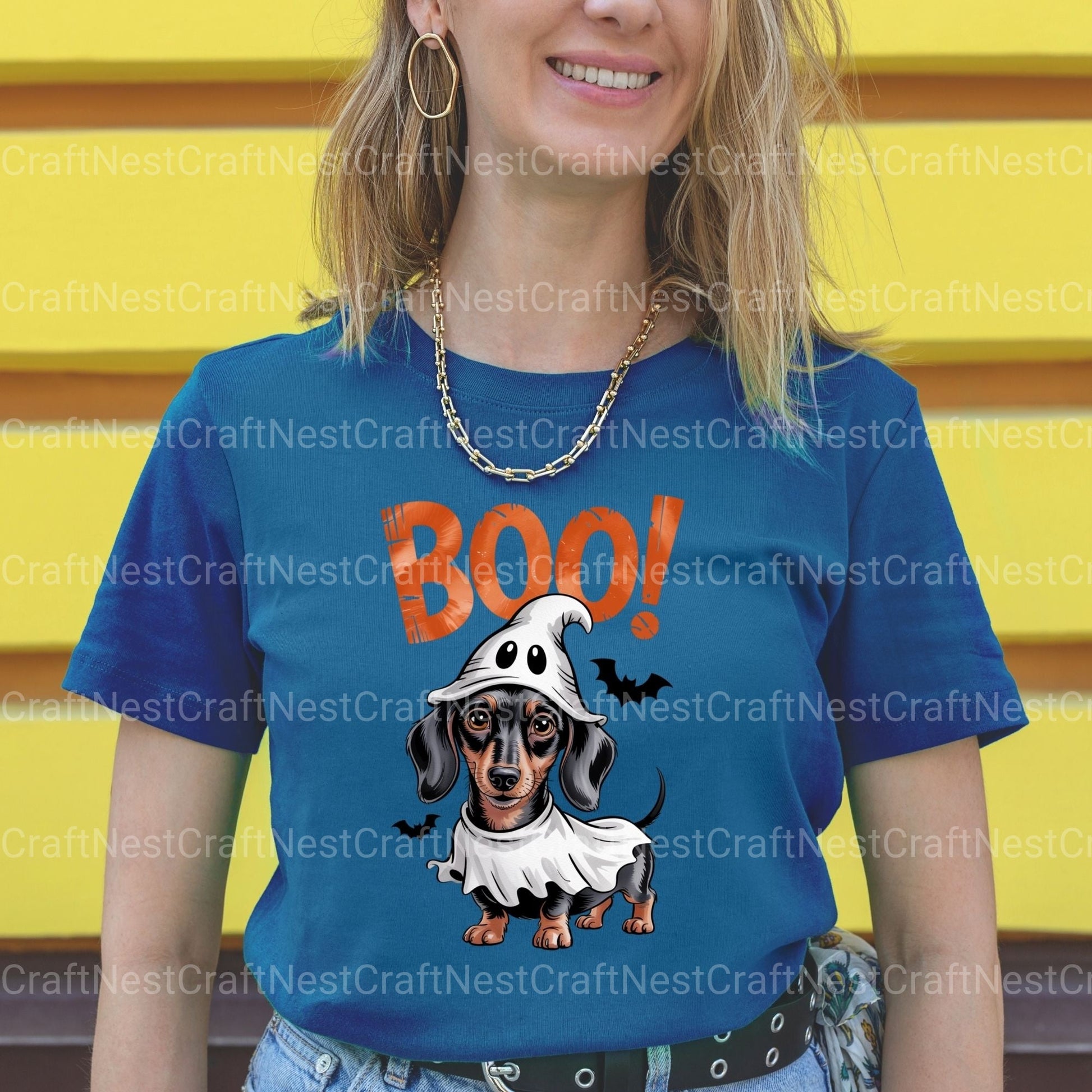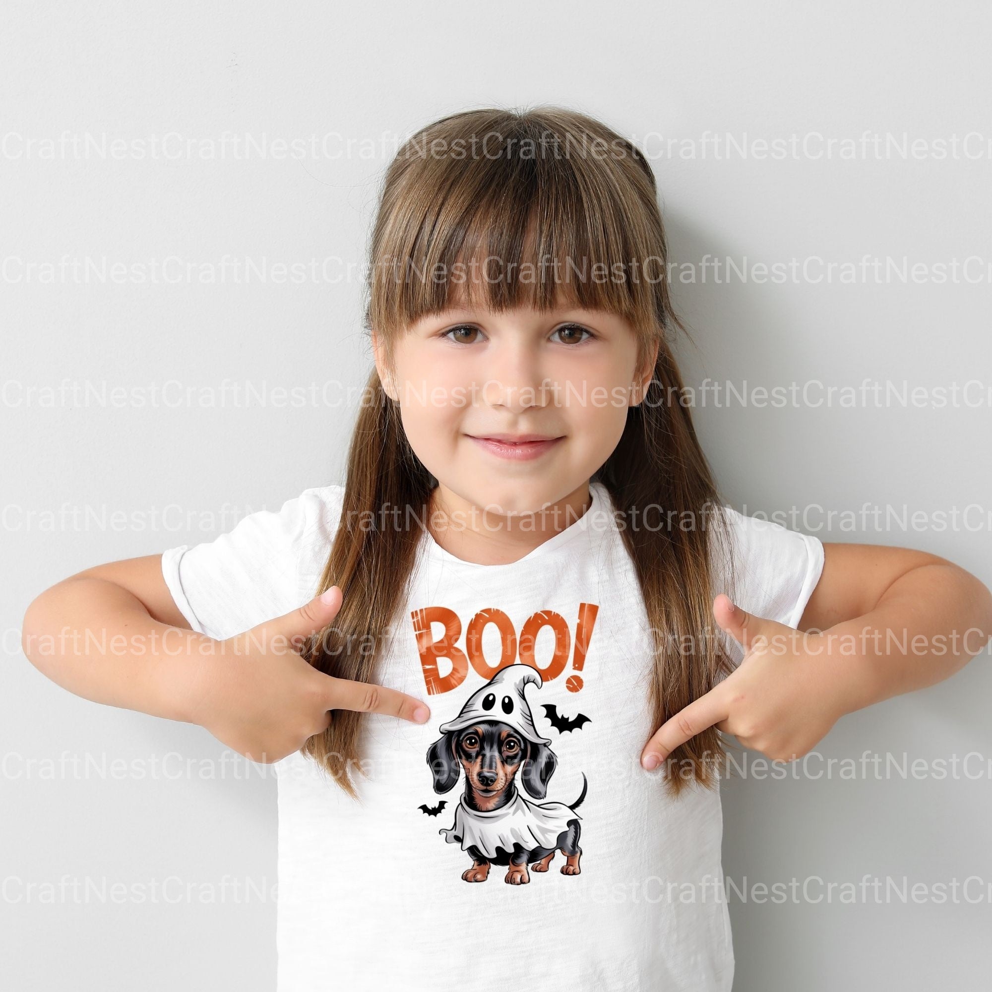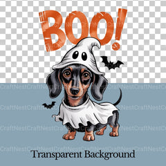 Spook with this Dachshund Ghost Boo Clipart Bundle, featuring Halloween dachshund ghost designs, perfect for dog Halloween crafts.