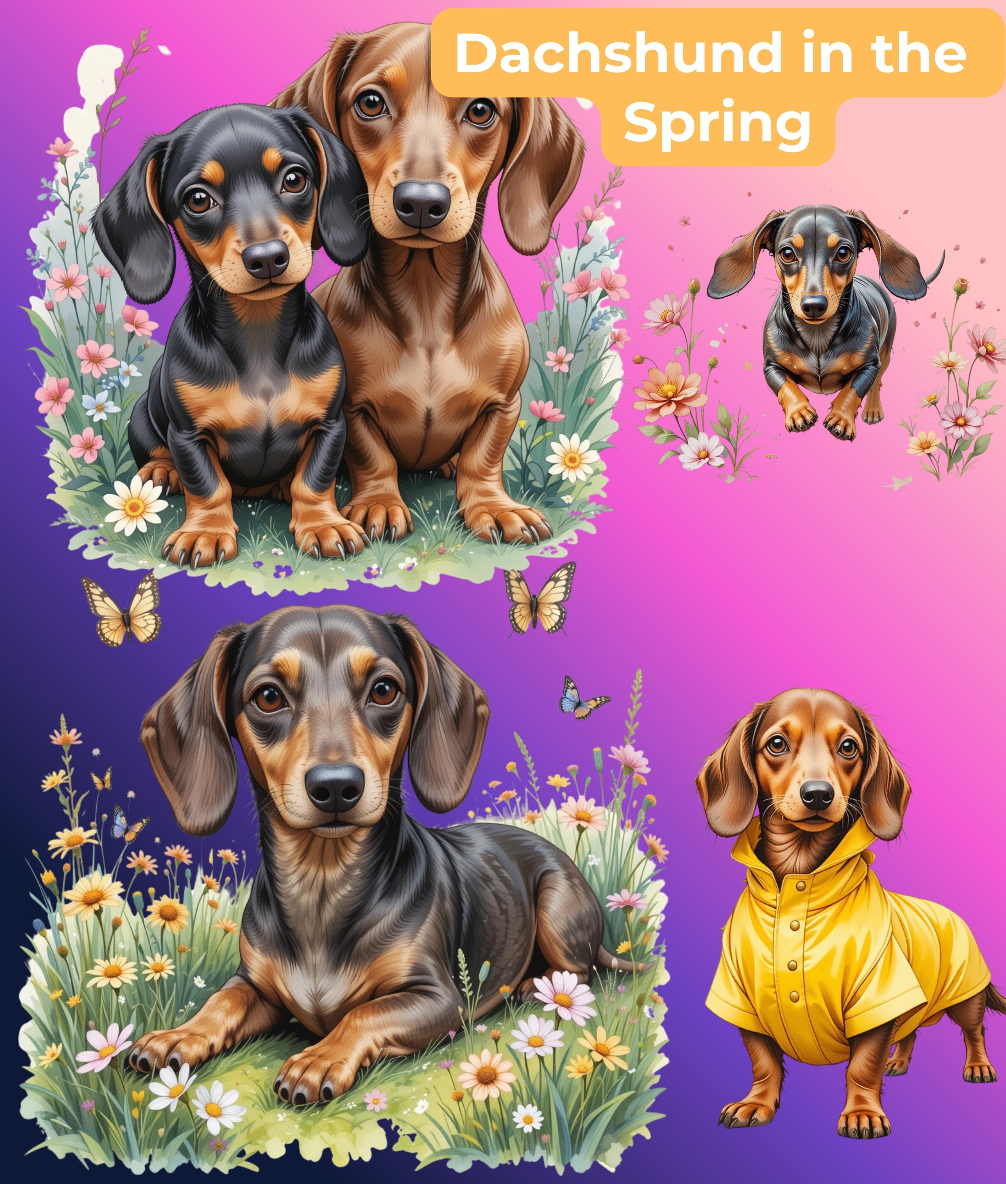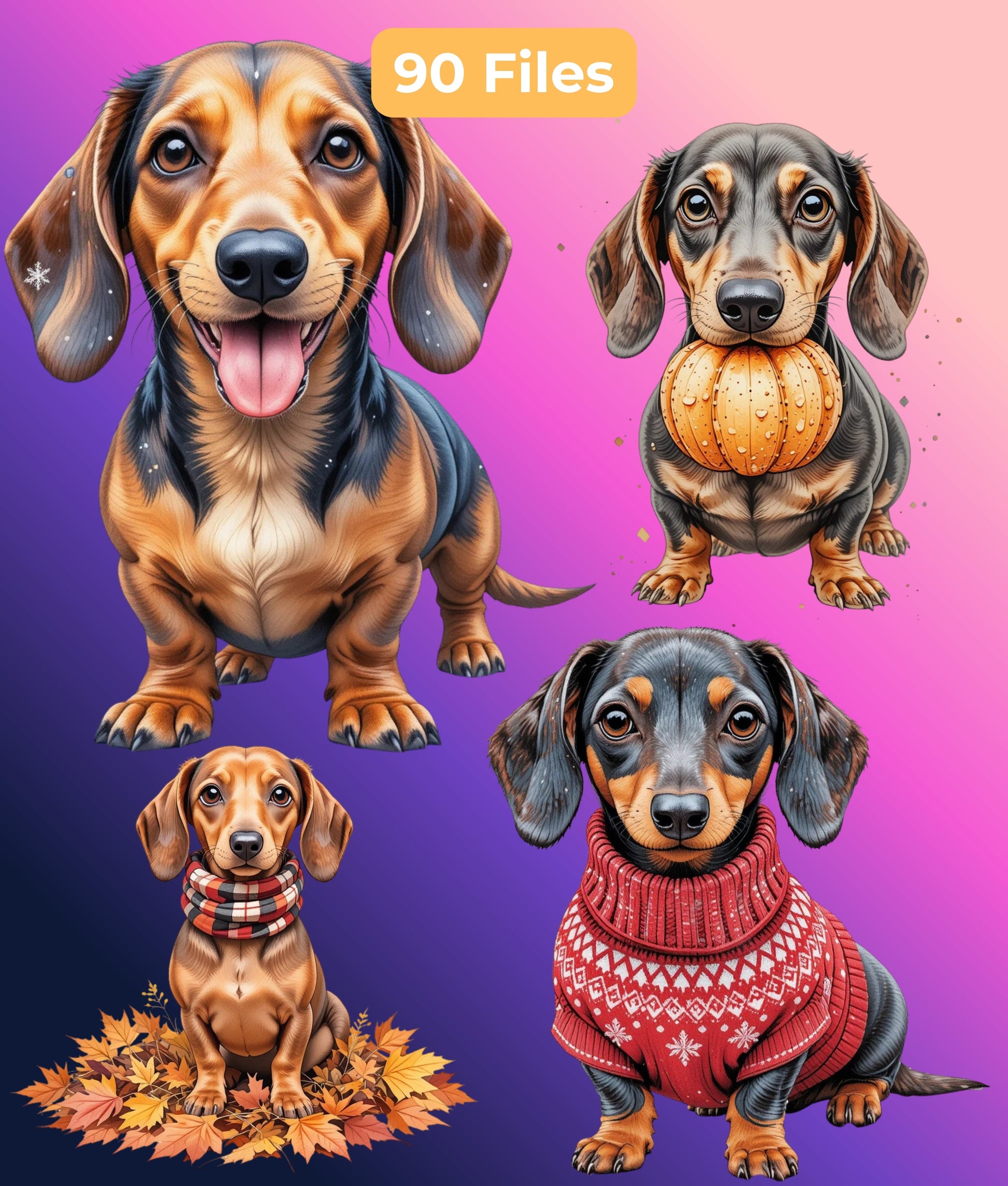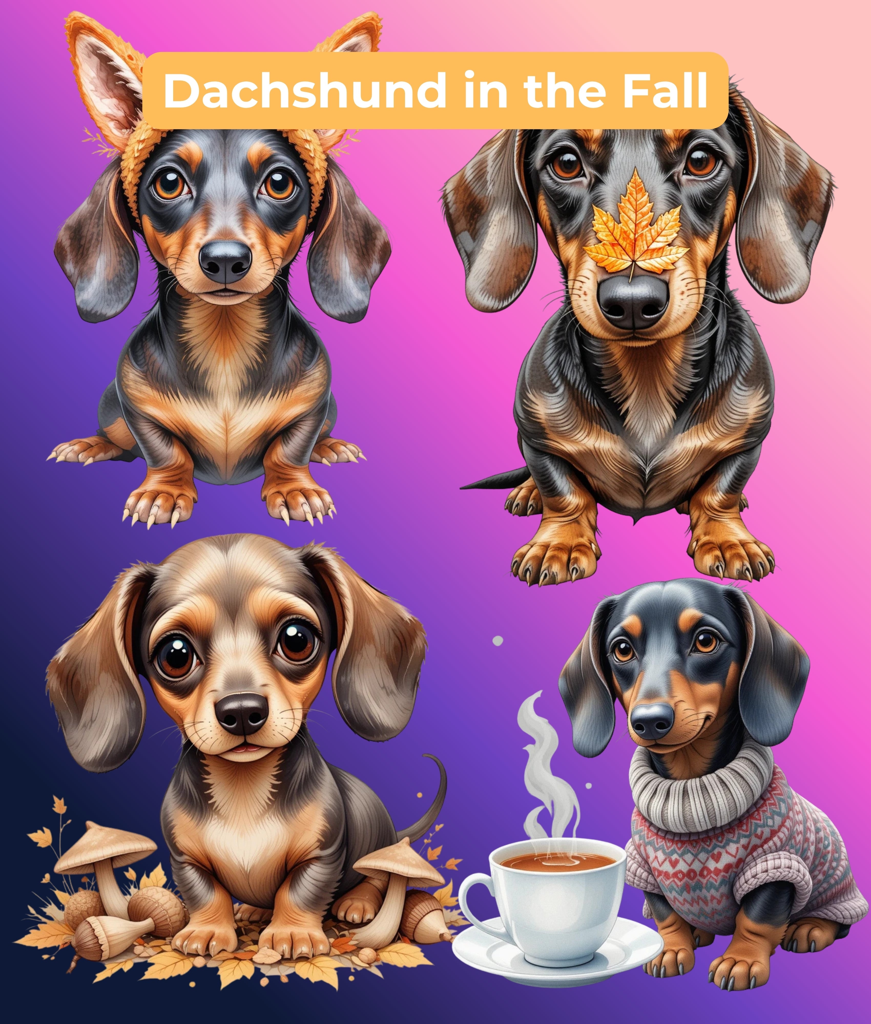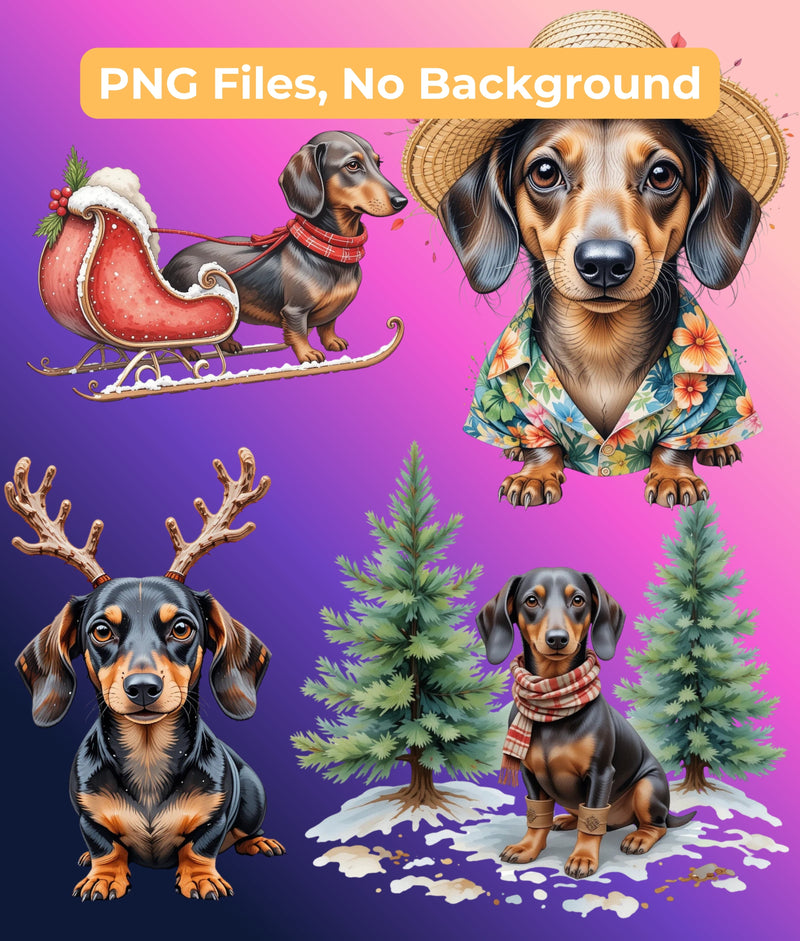 Enhance your creative projects with the Dachshund Through the Seasons Clipart Bundle, featuring charming dachshund illustrations perfect for year-round crafts. Ideal for scrapbooking, card making, and seasonal decorations, this versatile collection brings a playful touch to any design. Unleash your creativity with these delightful dachshund graphics, tailored for every occasion.