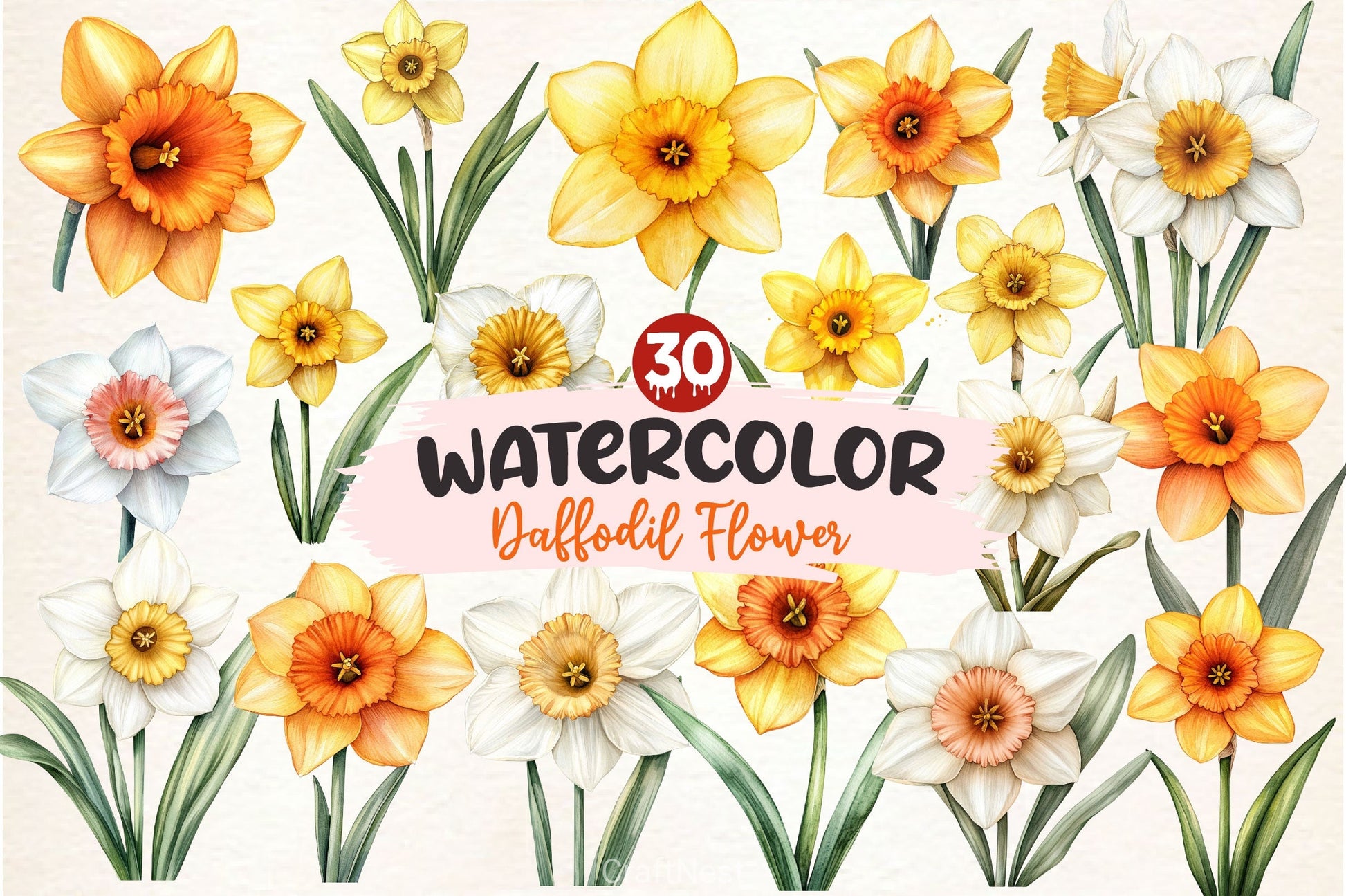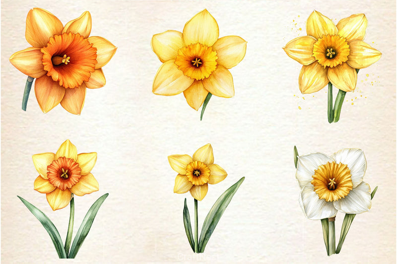 Spring with this Daffodil Flower Clipart Bundle, featuring early bloom designs, perfect for spring garden crafts.