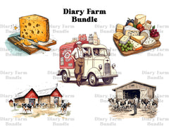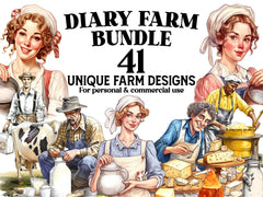 Celebrate the simplicity and beauty of rural life with our Dairy Farming clip art. These serene digital illustrations depict scenes from a dairy farm, showcasing cows grazing in lush pastures and farmers tending to their daily tasks, offering a glimpse into the tranquil world of dairy farming.