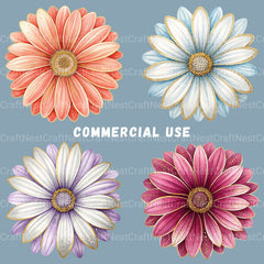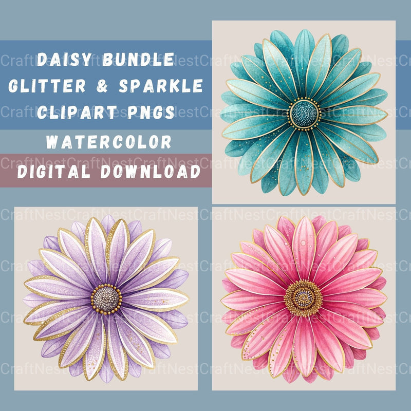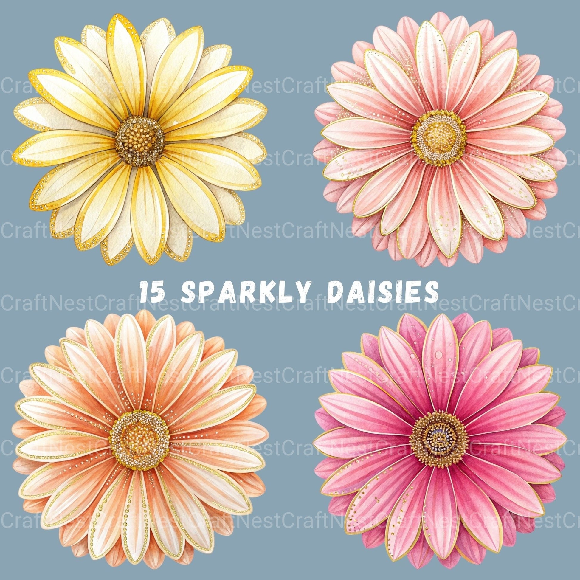 Sparkle with this Daisies Glitter 15 Clipart Bundle, featuring glittery daisy designs, ideal for flower spring crafts.
