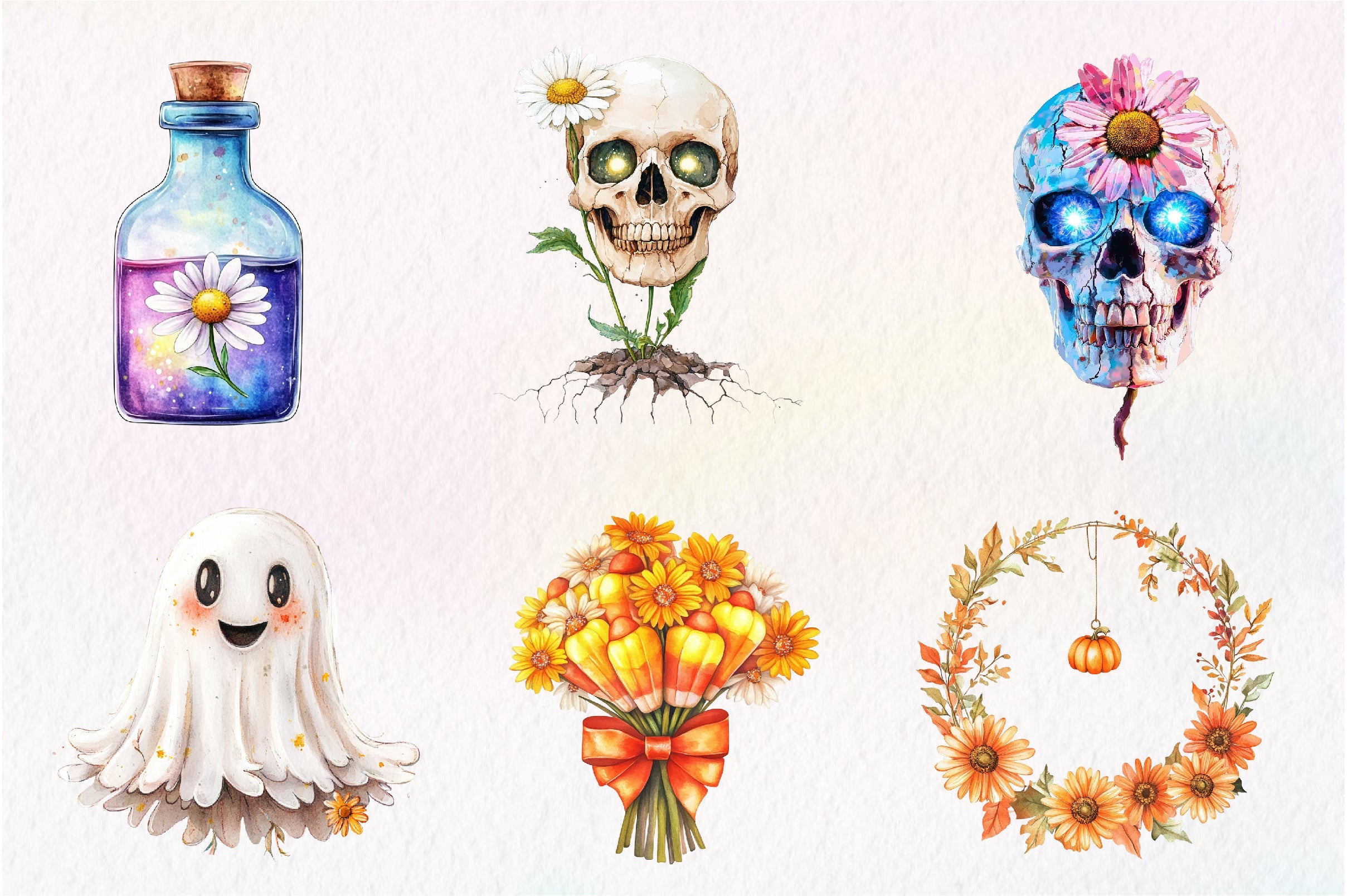 Bloom with this Daisy Flower & Halloween Clipart Bundle, featuring floral spooky designs, perfect for Halloween flower crafts.