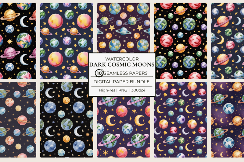 Transform your projects with Dark Cosmic Patterns Seamless Papers, featuring mesmerizing celestial designs perfect for mystical crafts and digital art. Ideal for creating enchanting backgrounds, these seamless patterns add a touch of cosmic elegance to any creative endeavor.