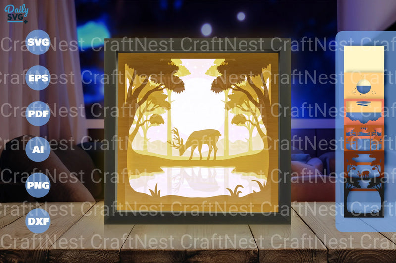 Deer at Lakeside Papercut SVG Bundle