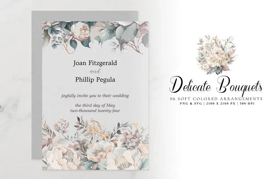 Discover the elegance of Delicate Bouquets - Floral, a stunning collection of intricately designed floral arrangements, perfect for adding a touch of sophistication to any space. Ideal for weddings, home decor, and special occasions.