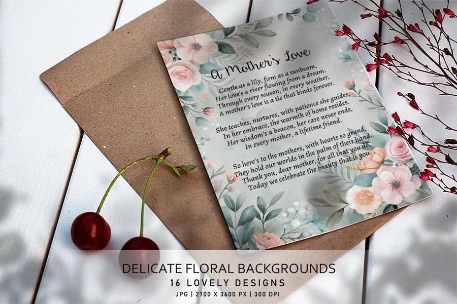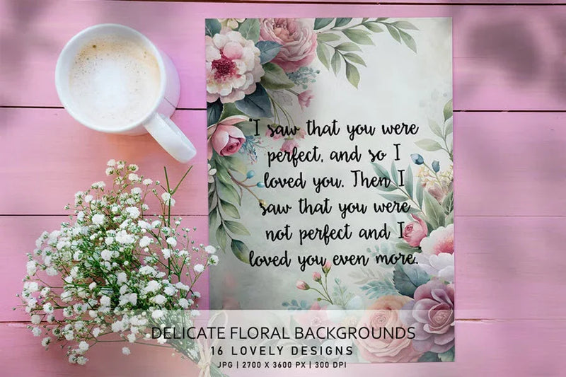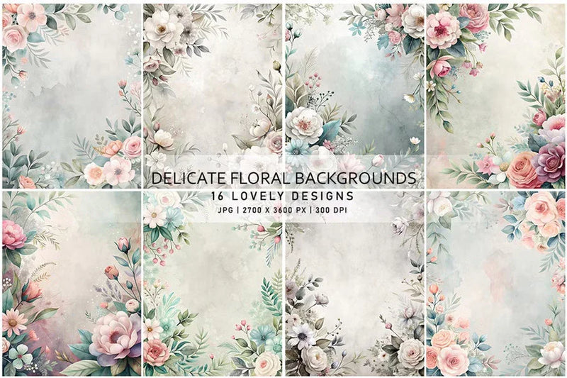 Enhance your creative projects with Delicate Floral Backgrounds, featuring exquisite floral designs perfect for invitations, scrapbooking, and digital art. Ideal for adding a touch of elegance to any craft.