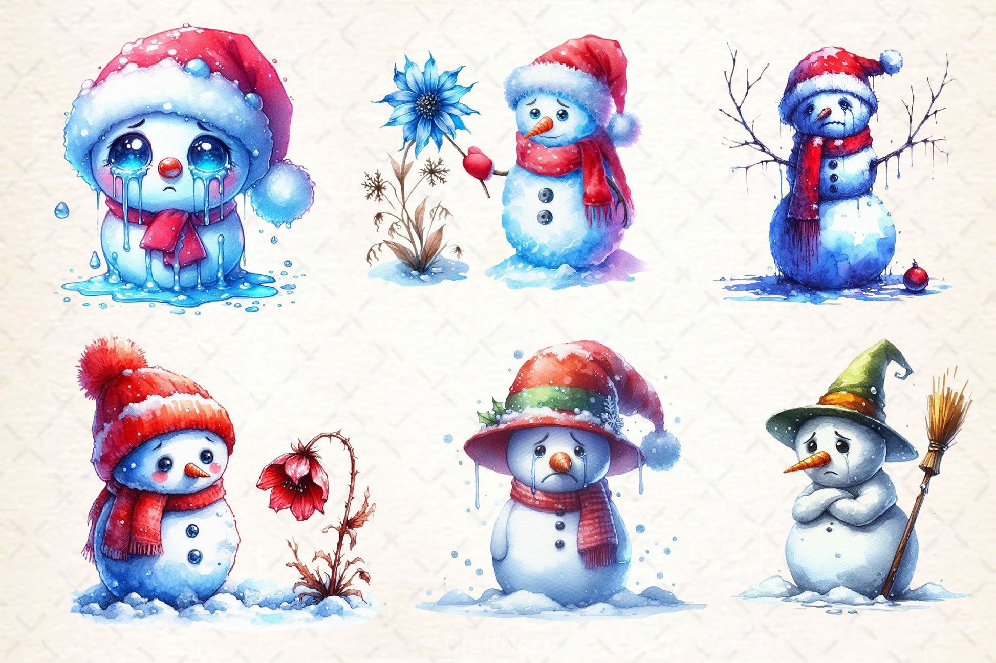 Melancholy snowman designs perfect for winter blues and emotional awareness projects.