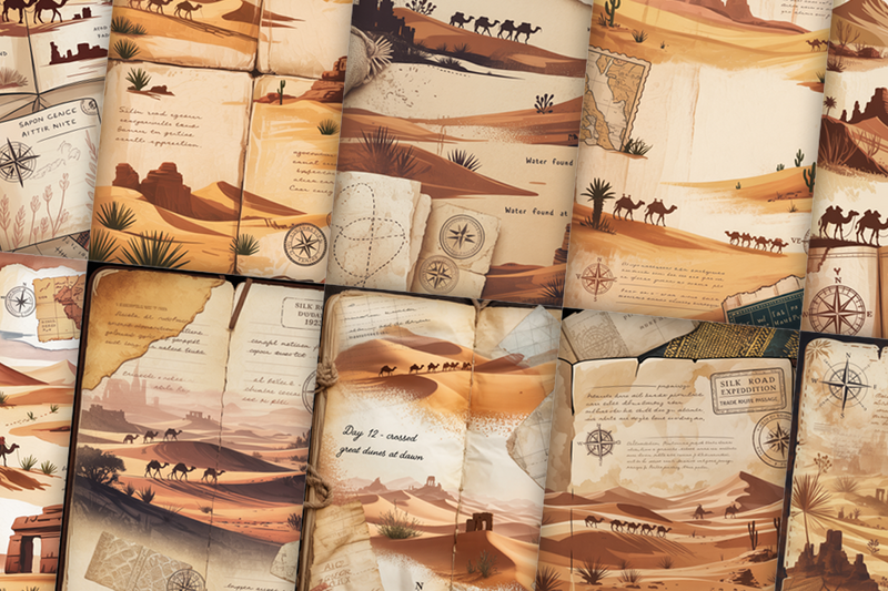 Unleash your creativity with Desert Explorer Junk Journal Papers, featuring stunning desert-themed designs perfect for crafting unique journals and scrapbooks. Ideal for artists and crafters seeking inspiration from the arid beauty of the desert landscape.