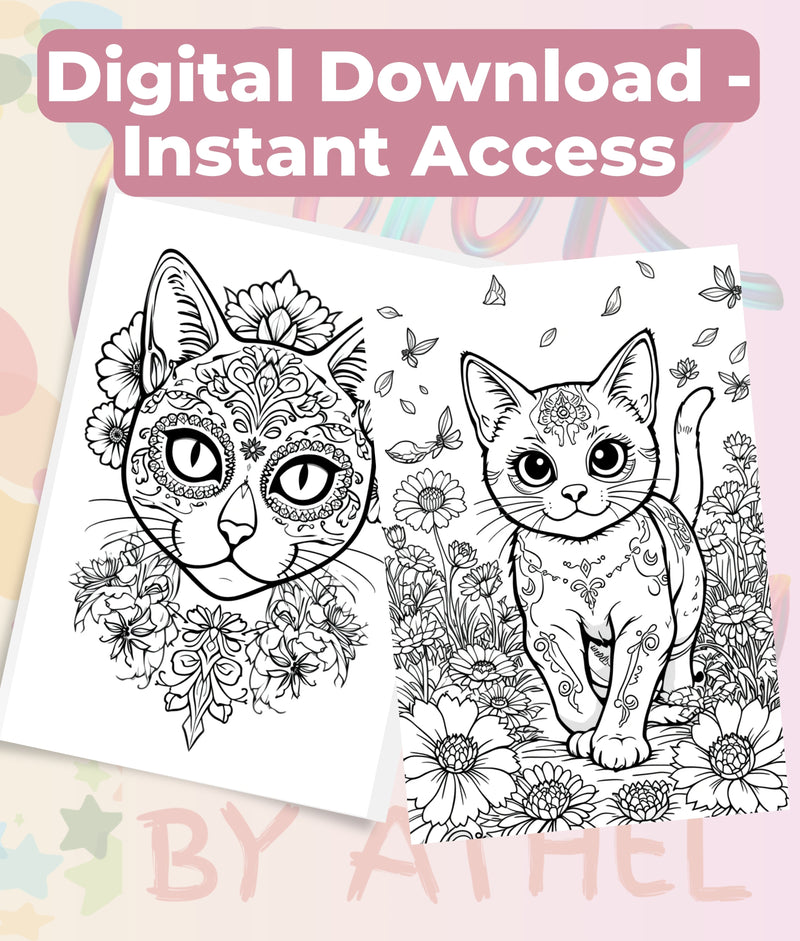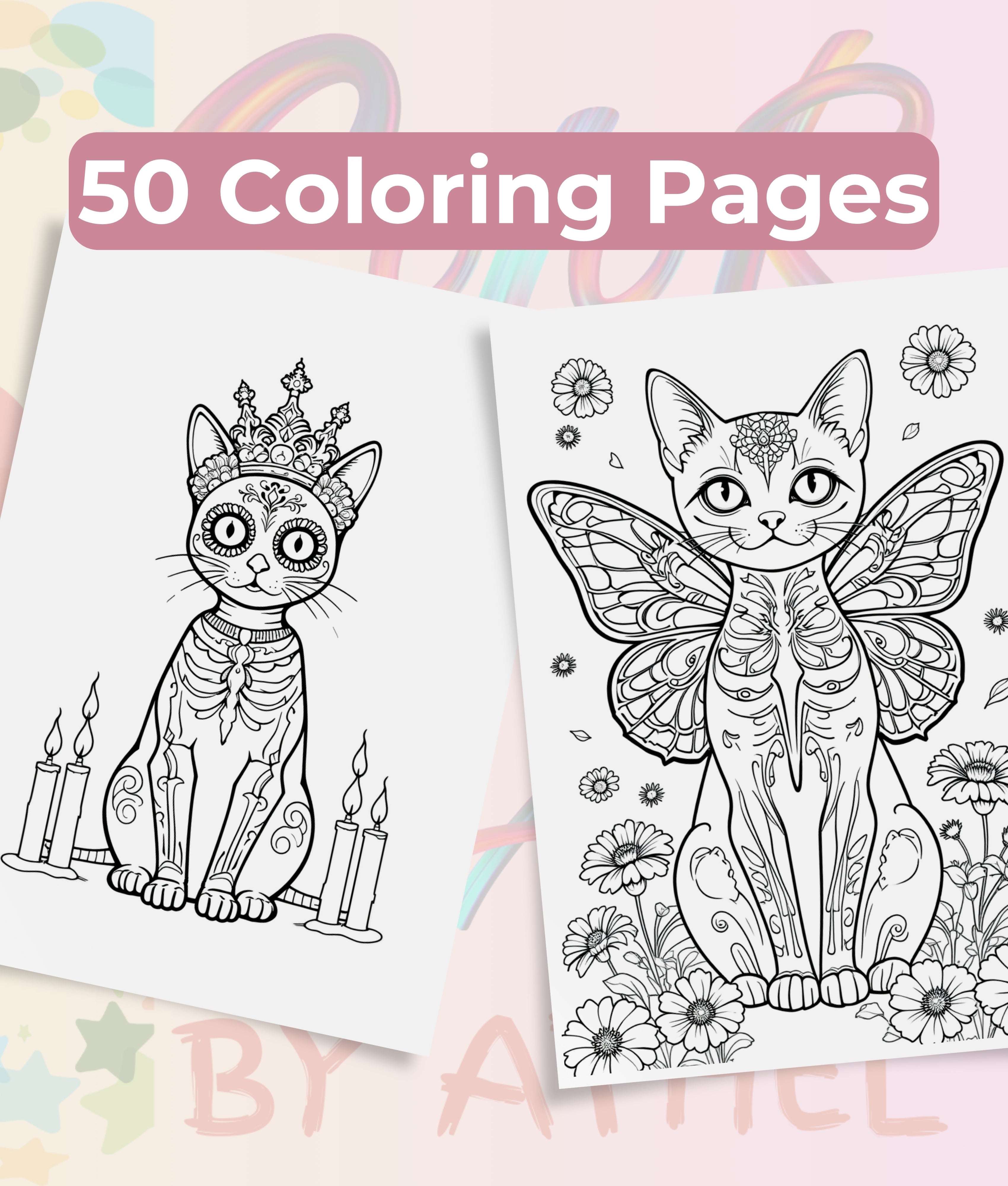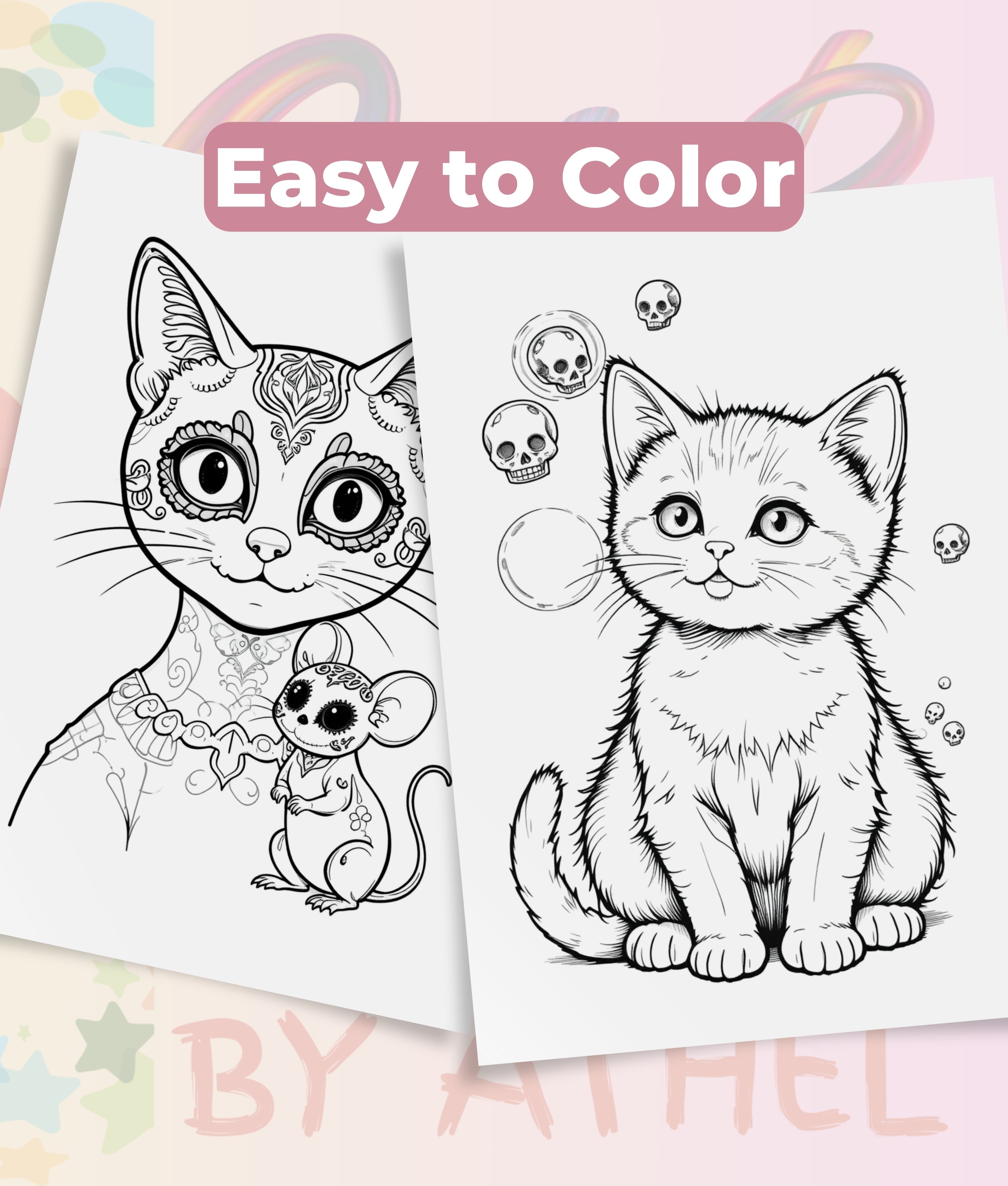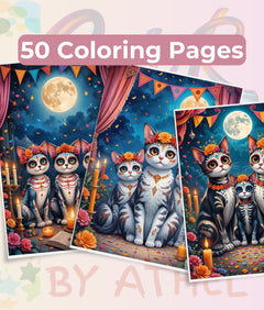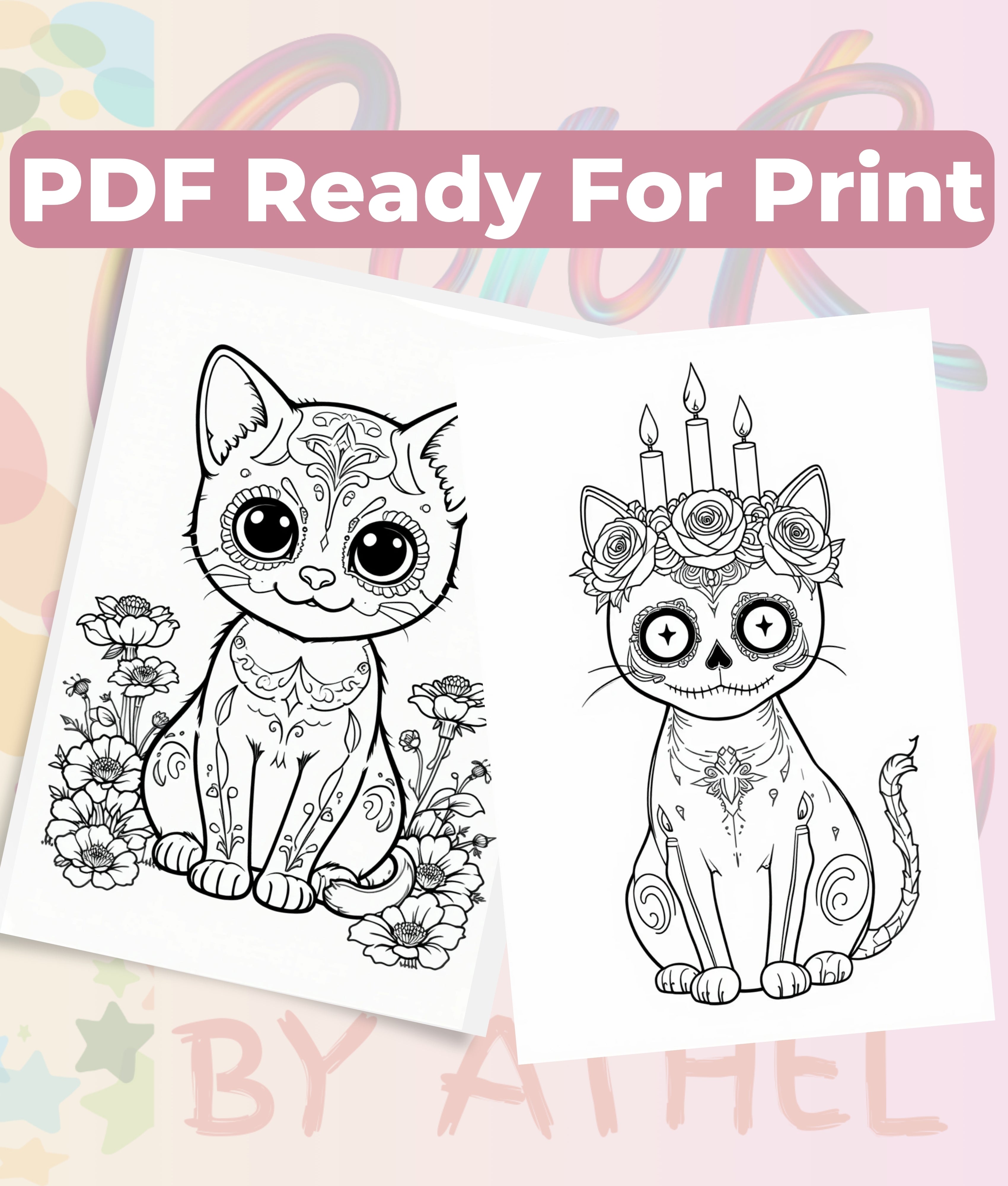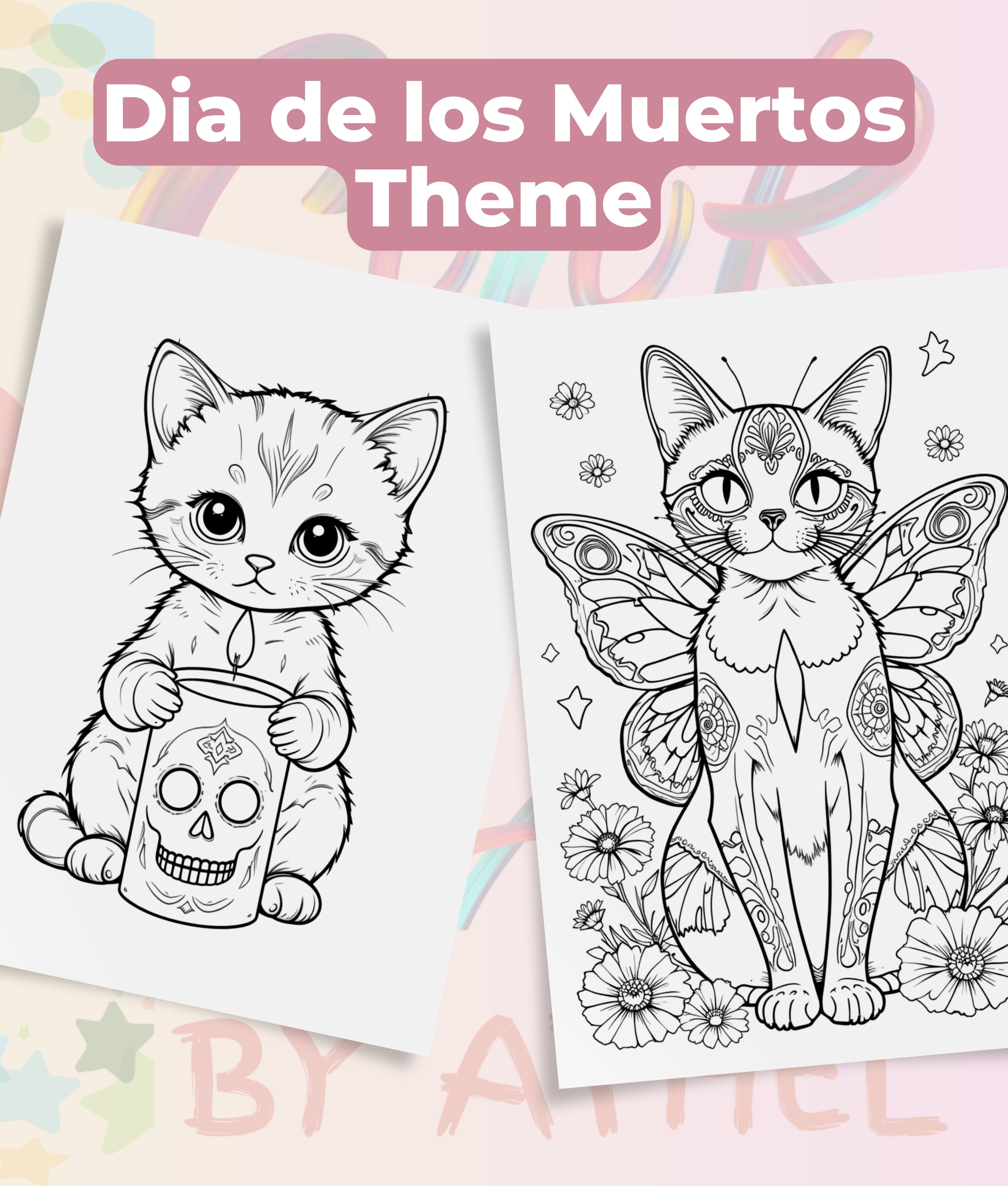 Celebrate the vibrant spirit of Dia de los Muertos with our Cats Coloring Book Bundle. Dive into a world of intricate feline designs, perfect for unleashing your creativity. Ideal for art enthusiasts and cat lovers alike, this bundle offers hours of colorful fun. Perfect for festive crafts and unique gift ideas, each page is a masterpiece waiting to be brought to life. Embrace the tradition and charm of Dia de los Muertos with this captivating coloring experience.