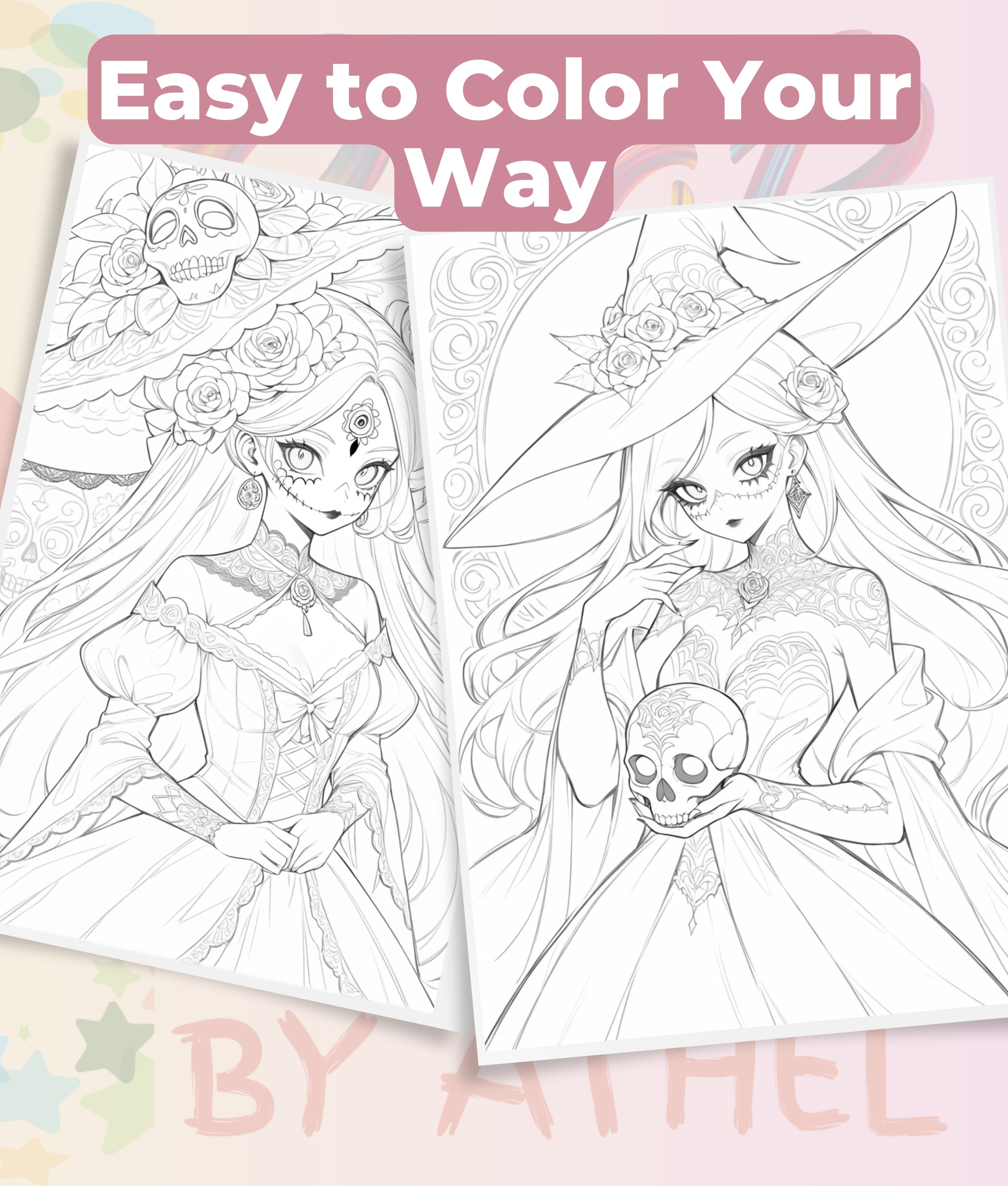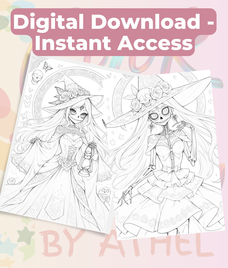 Unleash your creativity with the Día de los Muertos Witch Sketch Coloring Book Bundle. Dive into a world of mystical witch designs and vibrant Day of the Dead themes, perfect for artistic expression and festive crafts. Ideal for both beginners and seasoned artists, this bundle offers a unique blend of cultural celebration and magical charm. Transform your coloring experience with intricate patterns and enchanting illustrations that capture the spirit of Día de los Muertos.
