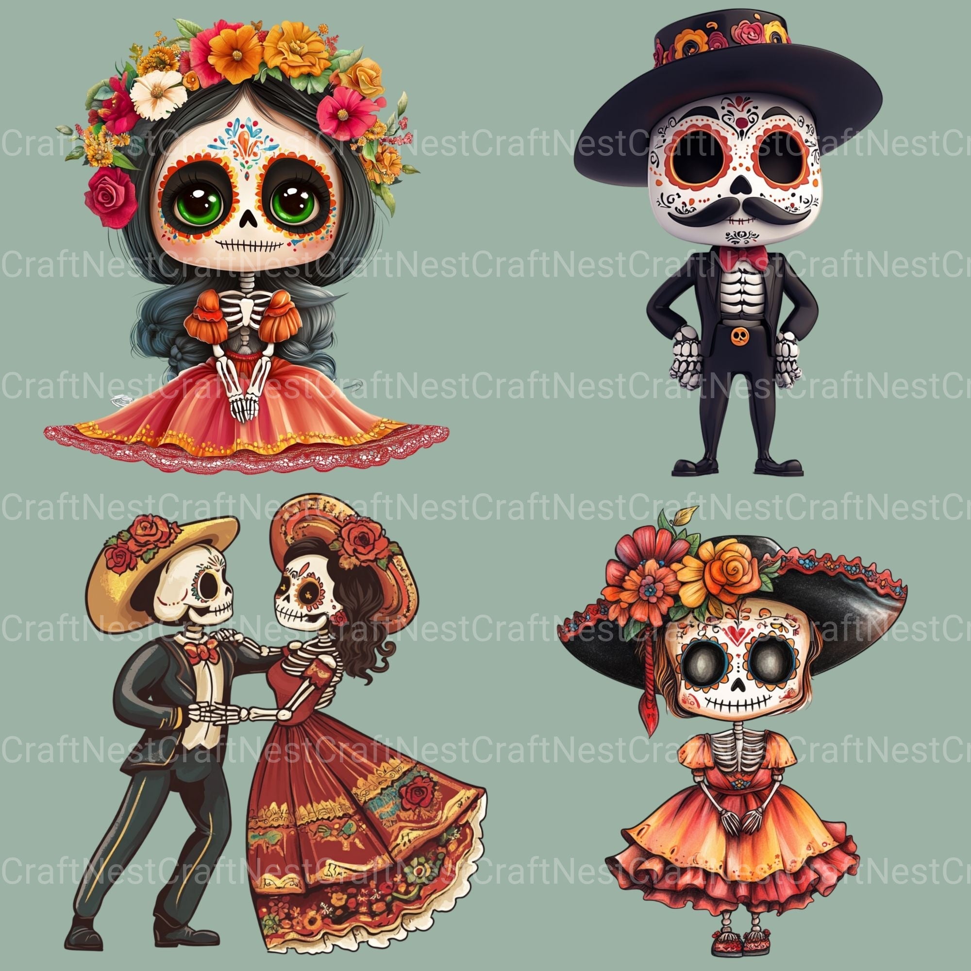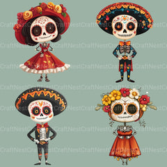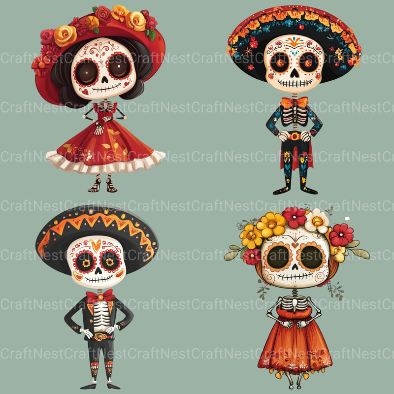 Honor with this Dia De Muertos Day Of The Dead 12 Clipart Bundle, featuring Day of the Dead designs, perfect for civilization celebration crafts.