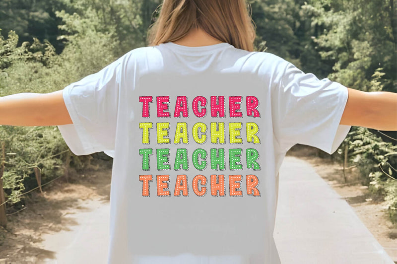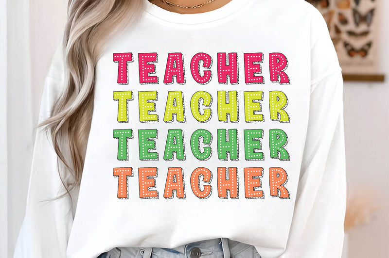 Say it loud: Teacher. Teacher. Teacher. Teacher. This playful graphic tee is perfect for proud educators, back-to-school outfits, or teacher appreciation gifts!