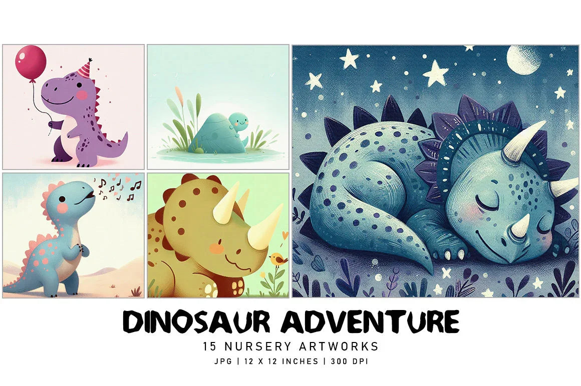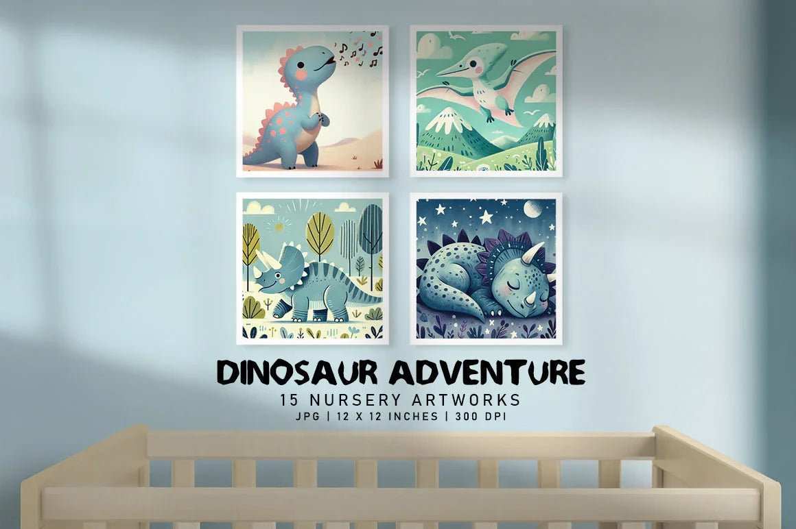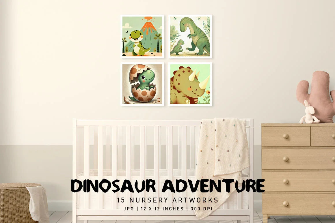 Embark on a prehistoric journey with the Dinosaur Adventure - Nursery, featuring charming dinosaur designs perfect for creating a captivating nursery environment. Ideal for dino-themed crafts and decor.