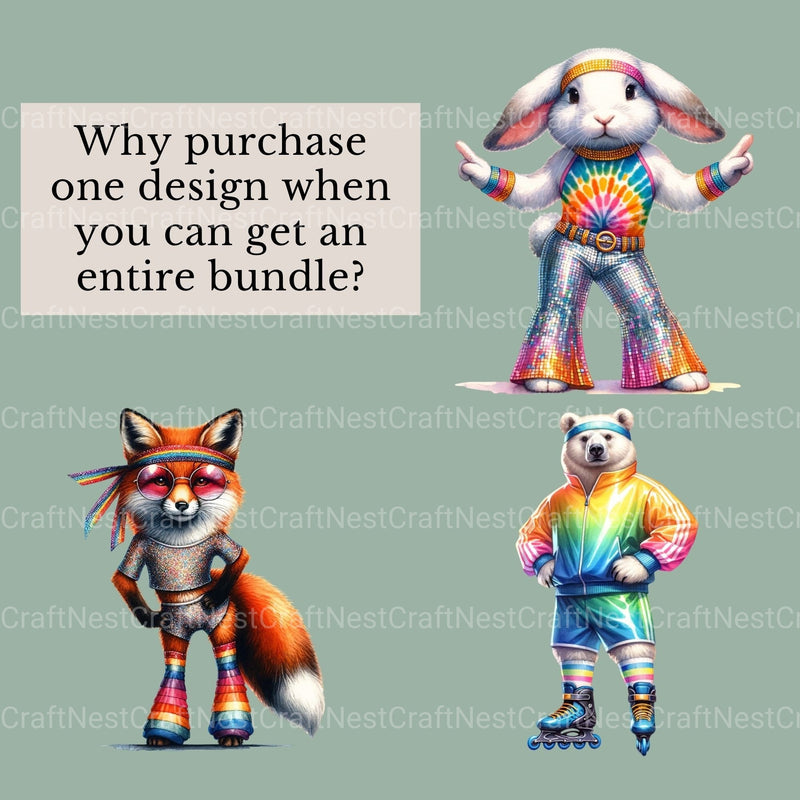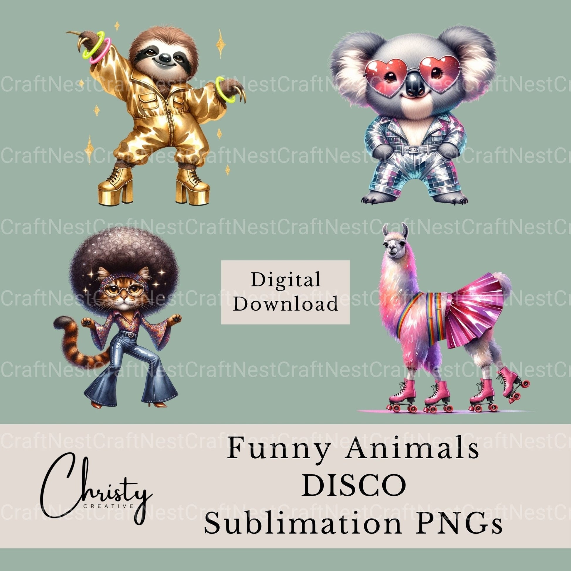 Dance with this Disco Animals 15 Clipart Bundle, featuring funky disco animal designs, perfect for retro party crafts.