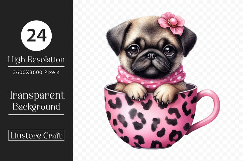 Sip with this Dog Sitting In Tea Cup Clipart Bundle, featuring tiny canine designs, perfect for kawaii pet crafts.