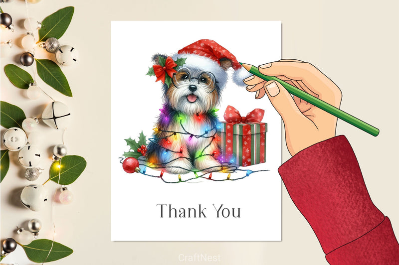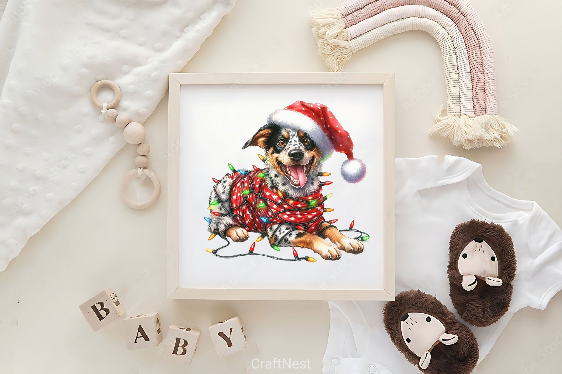 Tangle with this Dog Wrapped In Christmas Lights Clipart Bundle, featuring festive canine designs, perfect for pet Christmas crafts.