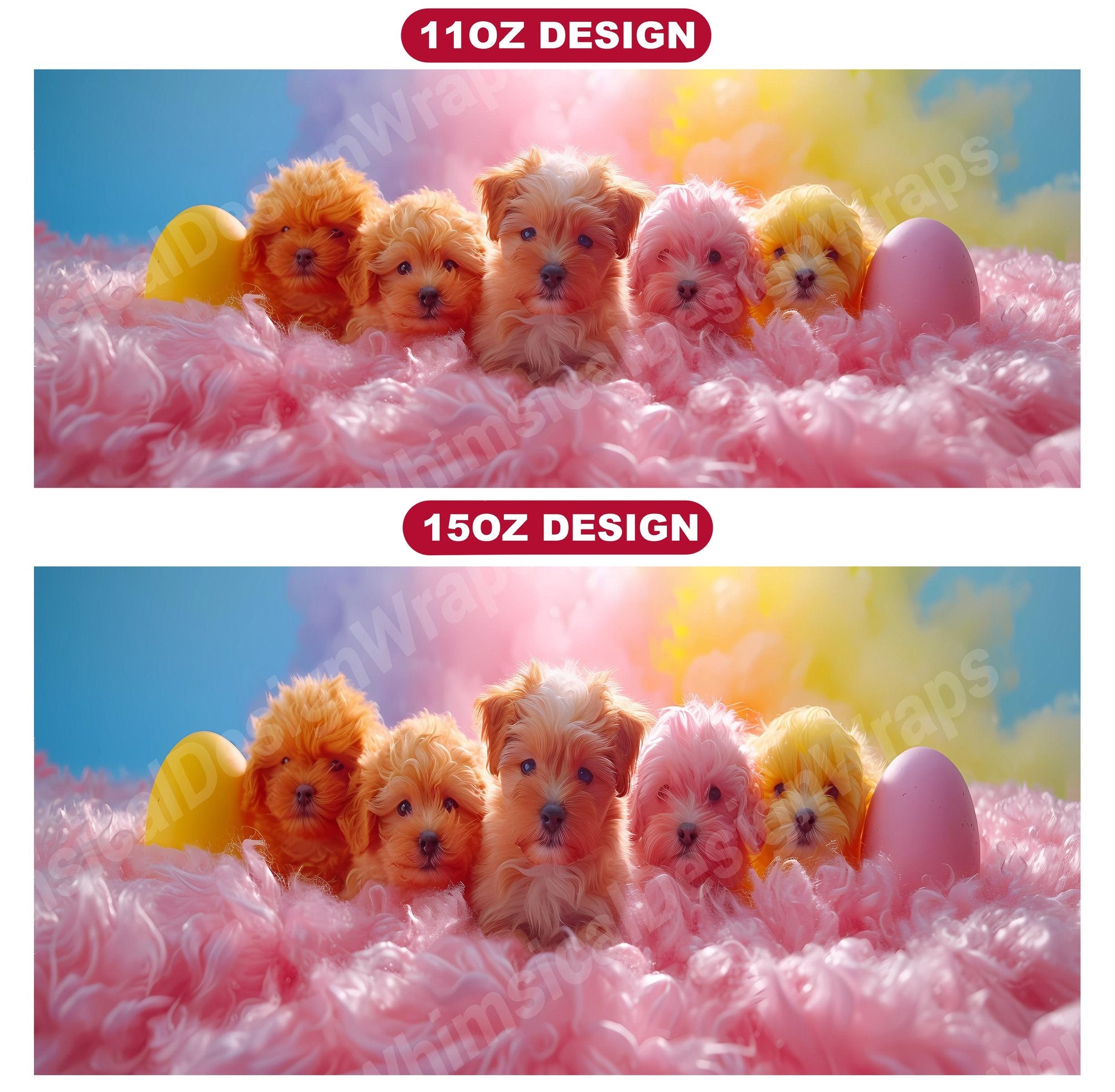 Savor the sweetness of Easter with our Dogs Easter digital mug wraps. These endearing designs showcase lovable dogs surrounded by Easter treats, making them a delightful addition to your mug collection and a perfect way to start your day with the warmth and joy of Easter celebrations.