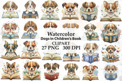Read with this Dogs In Children's Book Clipart Bundle, featuring storybook dog designs, ideal for educational pet crafts.