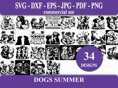 Playful dog designs enjoying the summer sun, these SVGs capture the joyful spirit of dogs frolicking in warm weather. From beach trips to park outings, each design reflects the carefree and happy moments of summer. Perfect for adding a touch of canine delight to your projects.