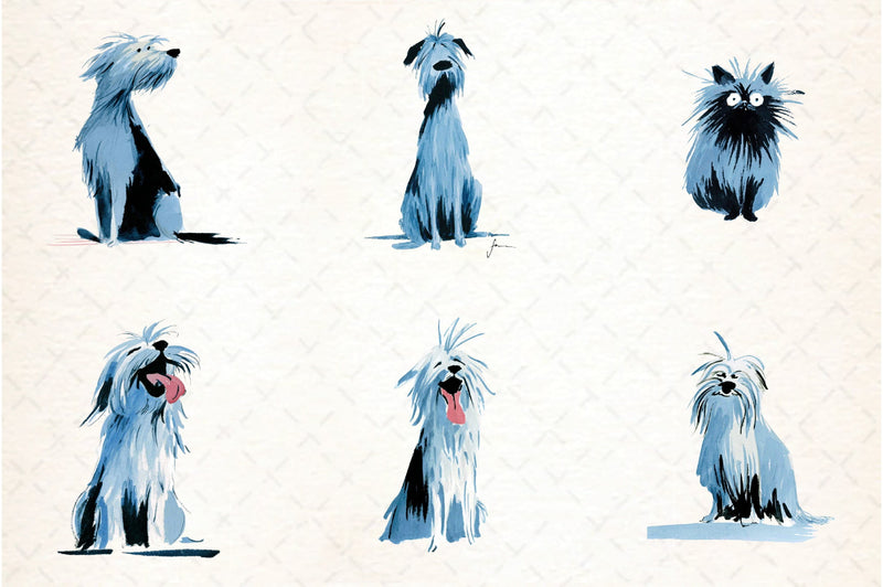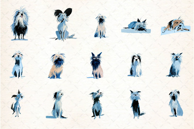 Enhance your artistic endeavors with this unique set of dog-themed clipart, perfect for both professional and personal use.