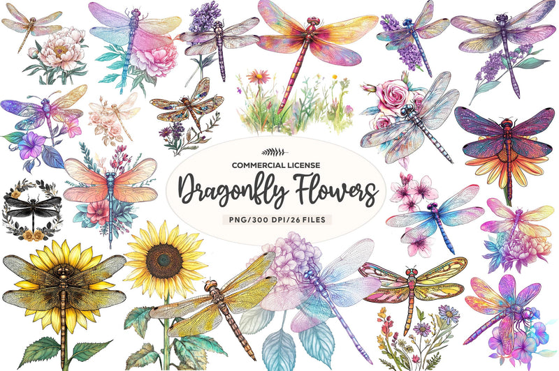 Garden with this Dragonfly And Flowers Clipart Bundle, featuring dragonfly flower designs, ideal for nature garden crafts.