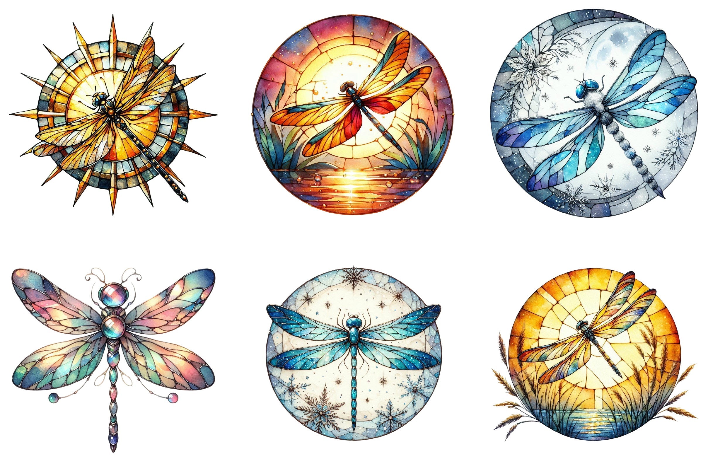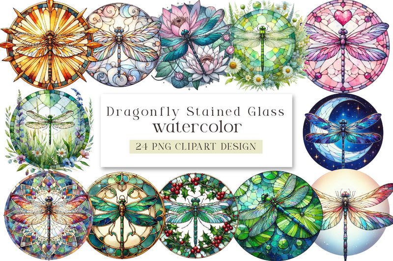 Dragonfly Stained Glass Clipart Bundle