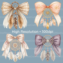 Dream with this Dreamcatcher Bows 15 Clipart Bundle, featuring bohemian dreamcatcher bow designs, ideal for boho fashion crafts.
