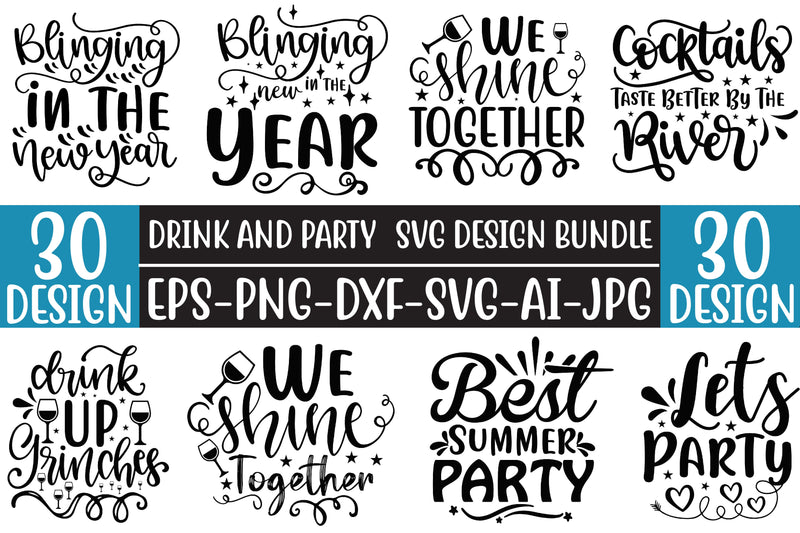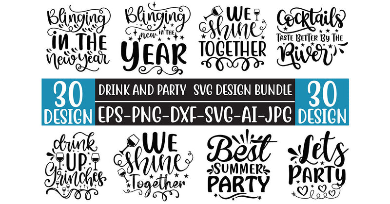 Toast with this Drink And Party SVG Bundle, featuring celebration designs, ideal for festive crafts.
