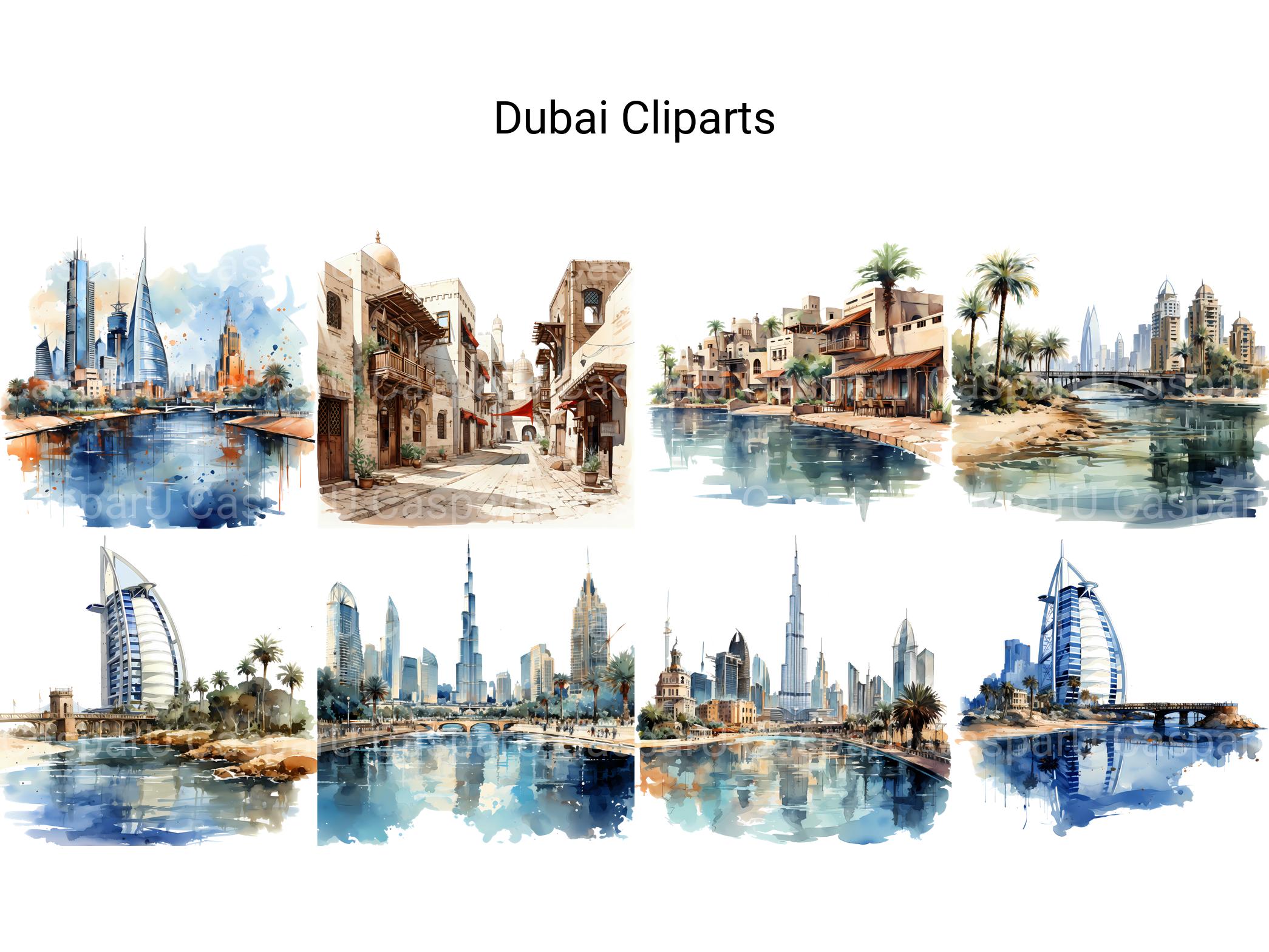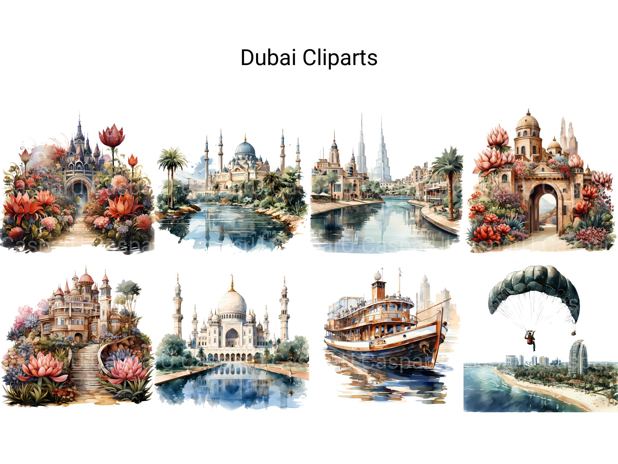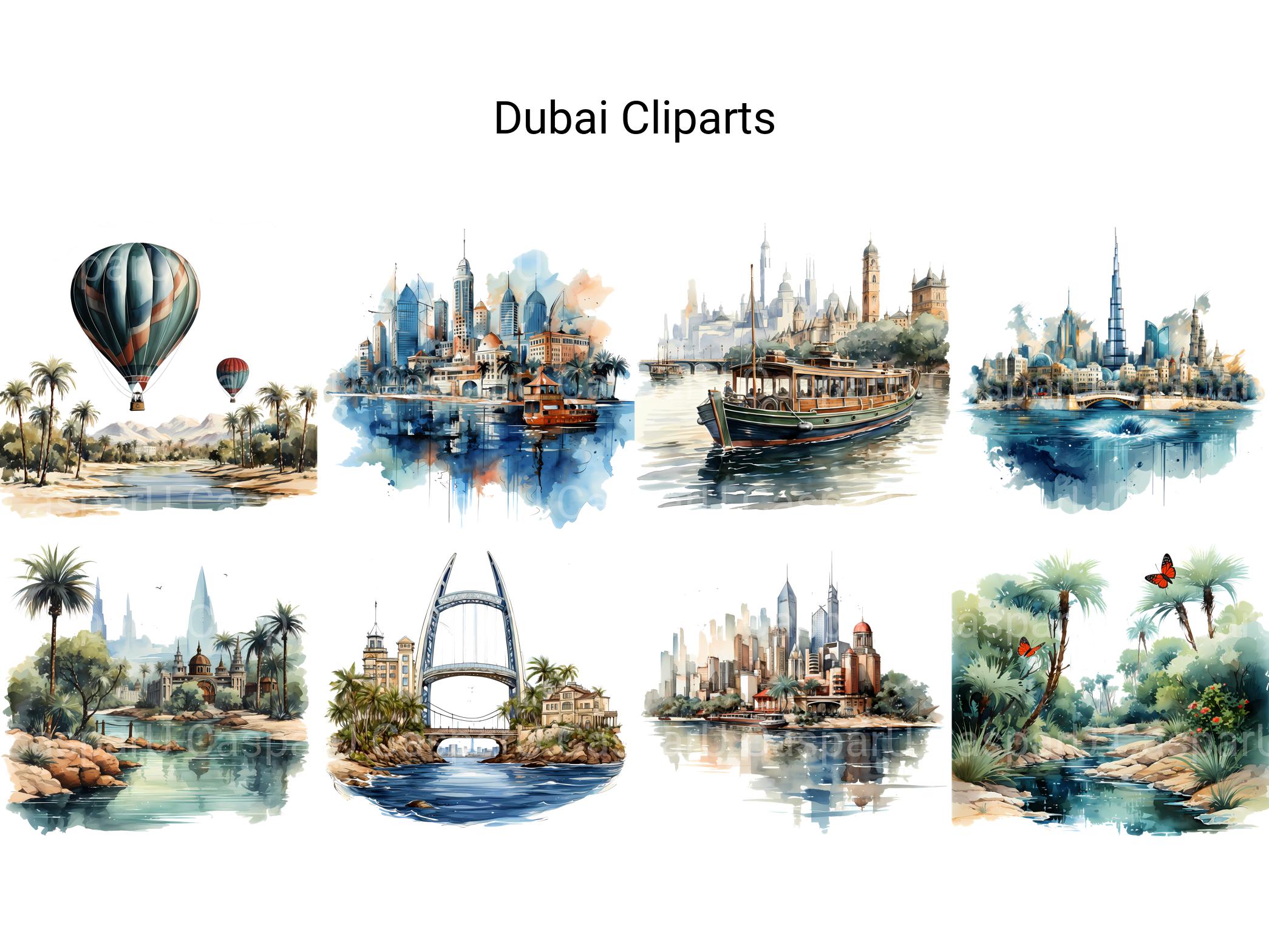 Discover the dazzling metropolis of Dubai with digital clip art showcasing its futuristic skyline, luxurious landmarks, and dynamic cityscape. These illustrations capture the essence of modernity and extravagance, perfect for adding a touch of cosmopolitan elegance to your projects, whether for travel brochures, event invitations, or promotional materials, inviting viewers to experience the opulence of Dubai's urban landscape.