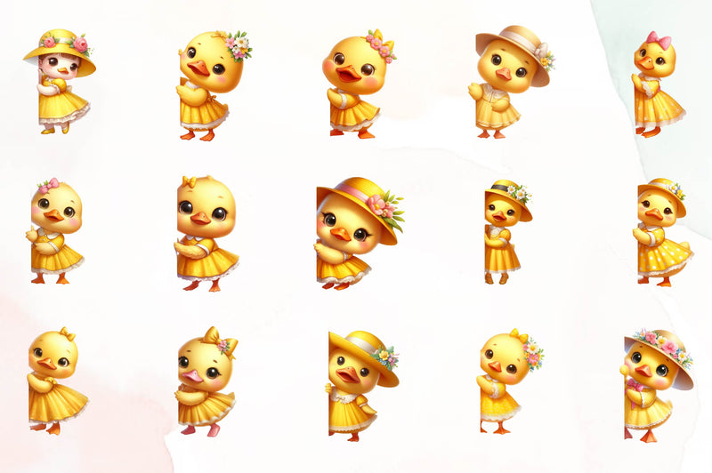 Waddle with this Ducks Peeking Around Corner Clipart Bundle, featuring playful duck designs, ideal for farm animal crafts.