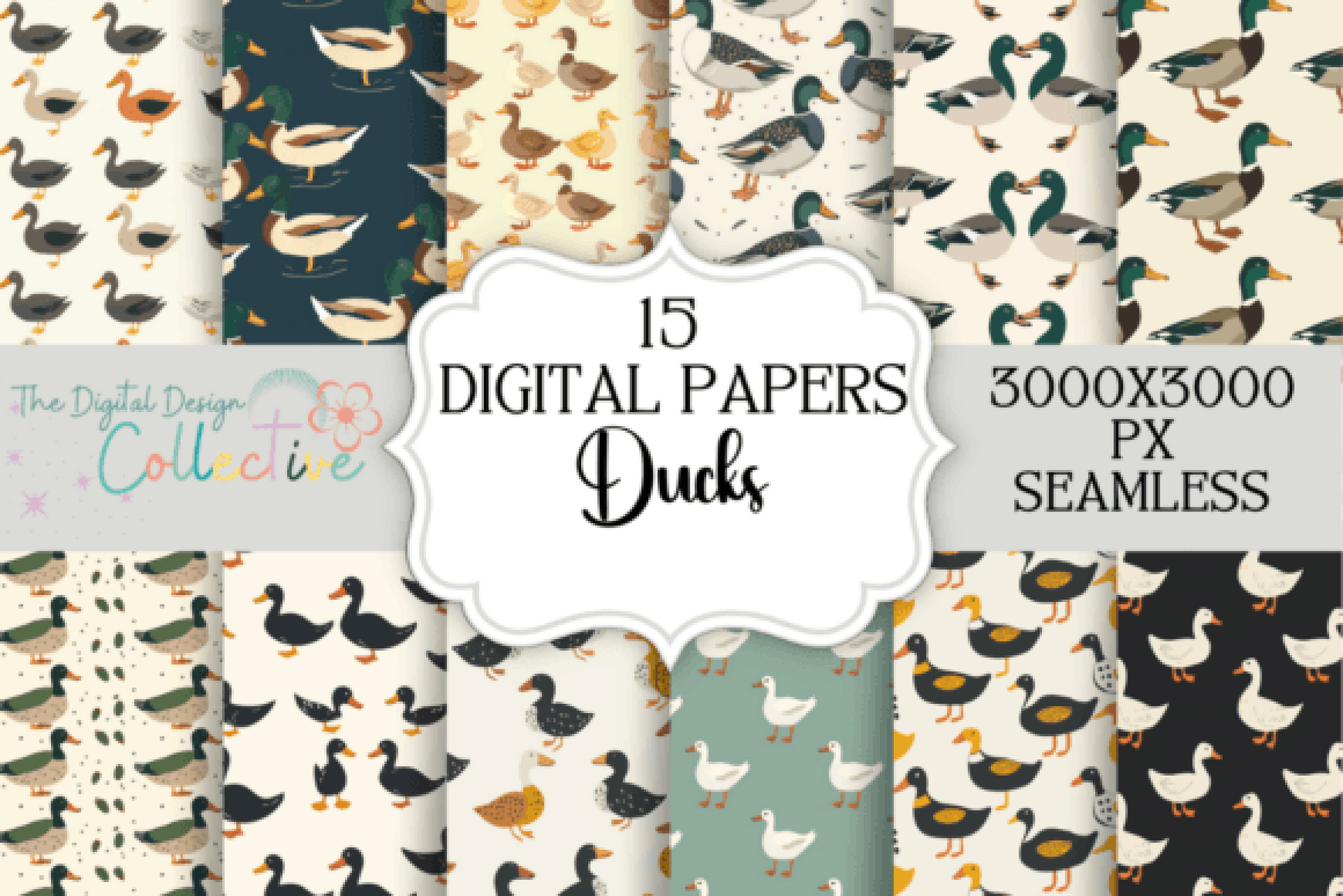 Enhance your creative projects with the Ducks Seamless Pattern Bundle, featuring charming duck designs perfect for whimsical crafts, textiles, and digital artwork.