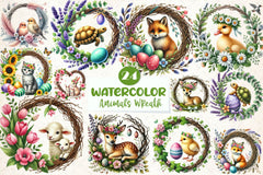 Wreath with this Easter Animals Wreath Clipart Bundle, featuring Easter animal wreaths, ideal for holiday decoration crafts.