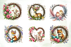 Easter Animals Wreath Clipart Bundle