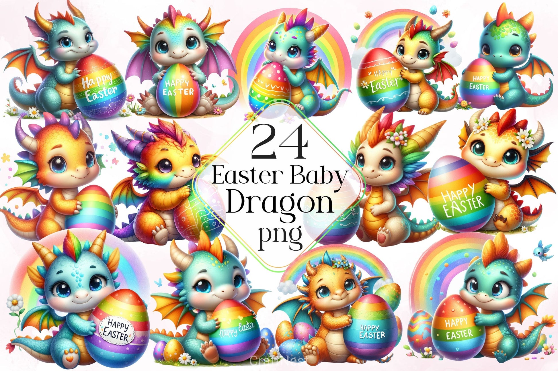 Easter Baby Dragon Clipart Bundle