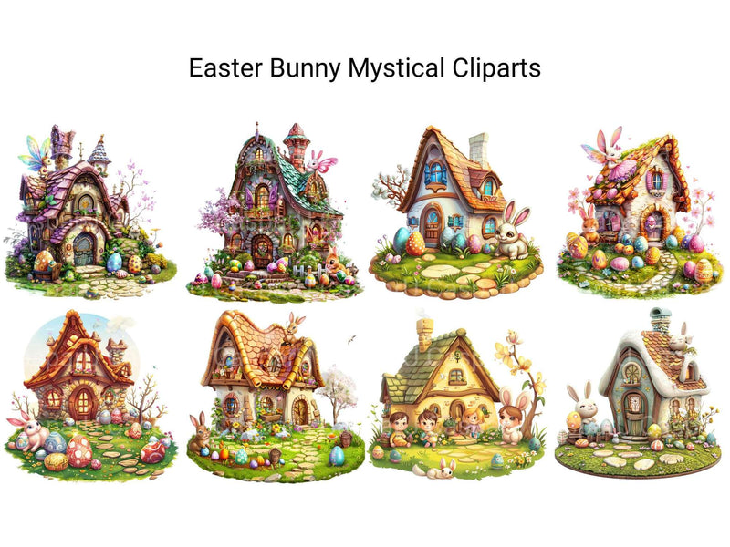 Hop into magic with this Easter Bunny Mystical Clipart set, featuring enchanting bunny designs, ideal for whimsical Easter crafts.