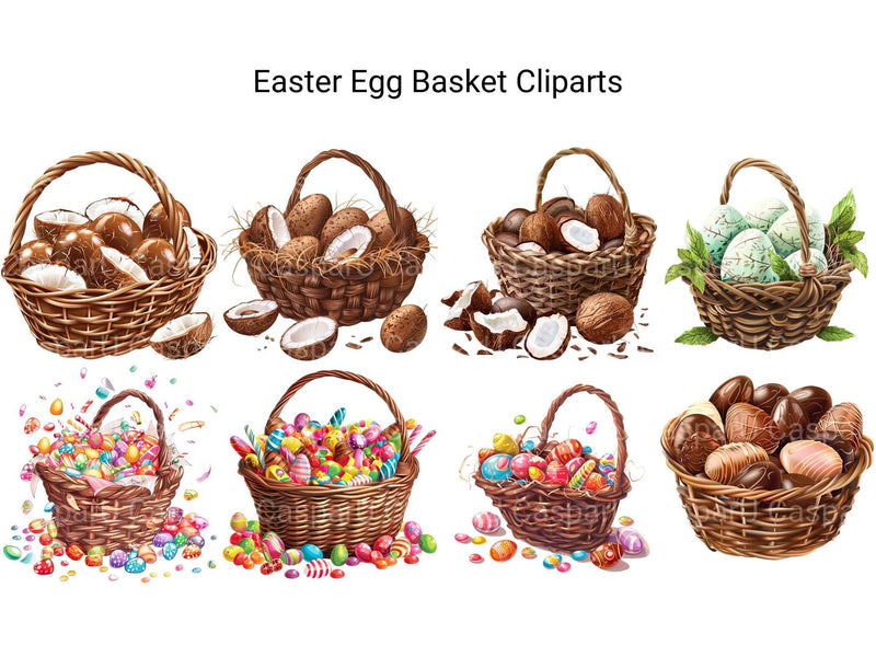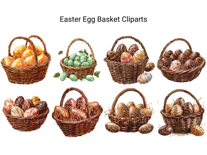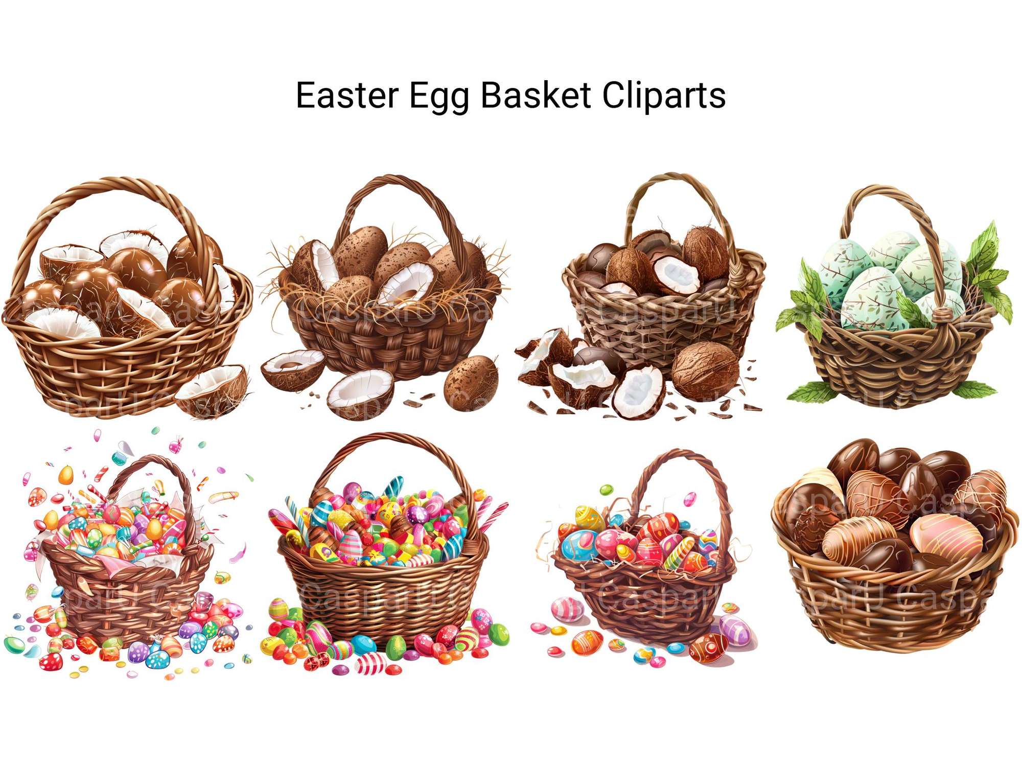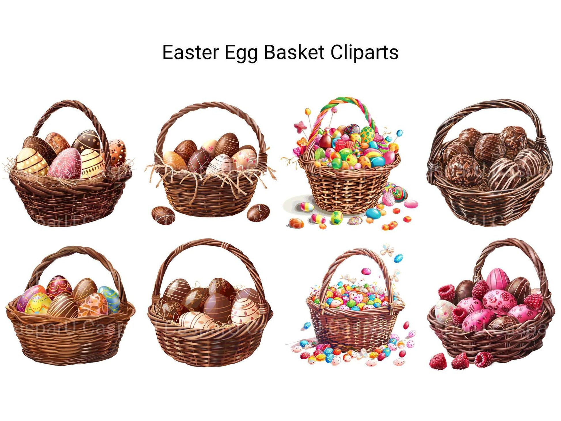 Hunt for fun with this Easter Egg Basket Clipart bundle, featuring festive egg basket designs, perfect for springtime projects.