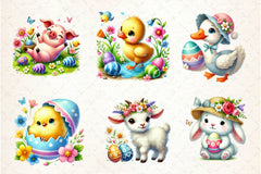 Celebrate with this Easter Farm Animals Clipart Bundle, featuring festive barnyard designs, perfect for Easter farming crafts.